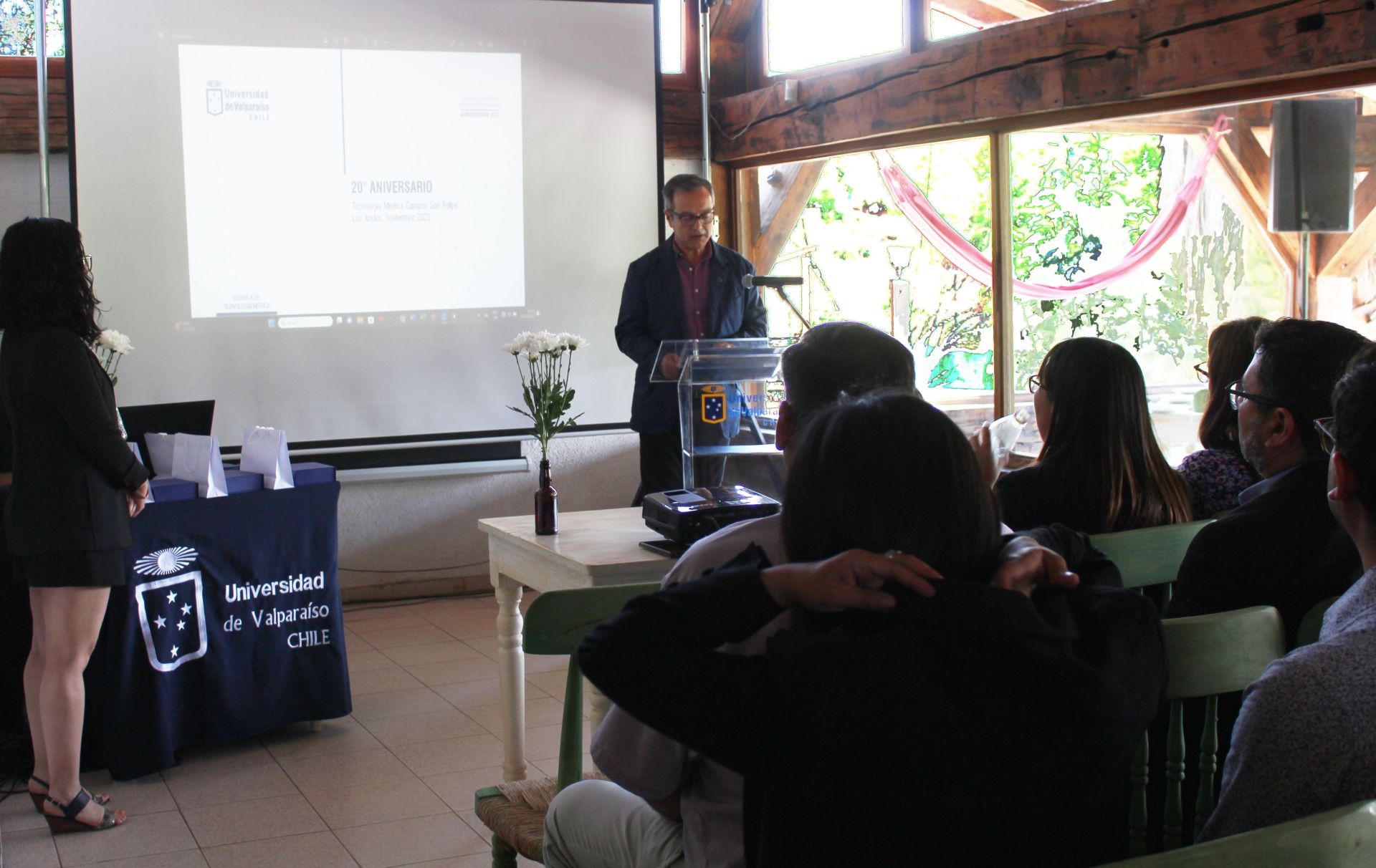 El pasado viernes 24 de noviembre, se llevó a cabo la ceremonia del vigésimo aniversario de la carrera de Tecnología Médica en el Campus San Felipe de la Universidad de Valparaíso, y para celebrarlo se reunieron autoridades de la casa de estudios, docentes, funcionarios, funcionarias y representantes estudiantiles, con el fin de agradecer el apoyo brindado por estos y reconocer los avances realizados en el período.