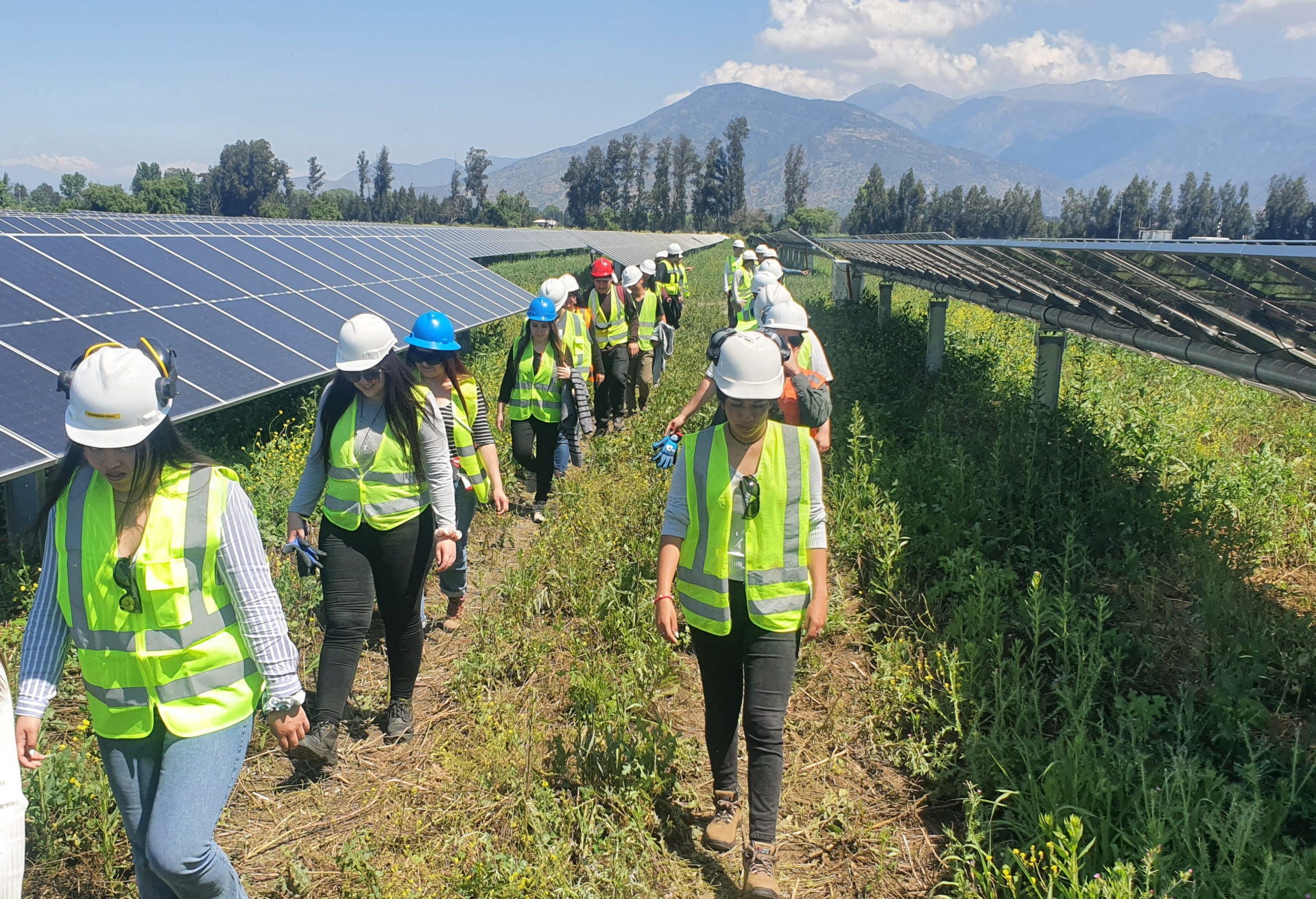 Treinta estudiantes de Ingeniería Civil Industrial de la Universidad de Valparaíso participaron de una visita a terreno a las instalaciones de la planta solar fotovoltaica La Colonia, de la empresa Enel, ubicada en Buin, como parte de la asignatura Gestión Energética, a cargo de las académicas Julia Wierner y Lorena Órdenes.