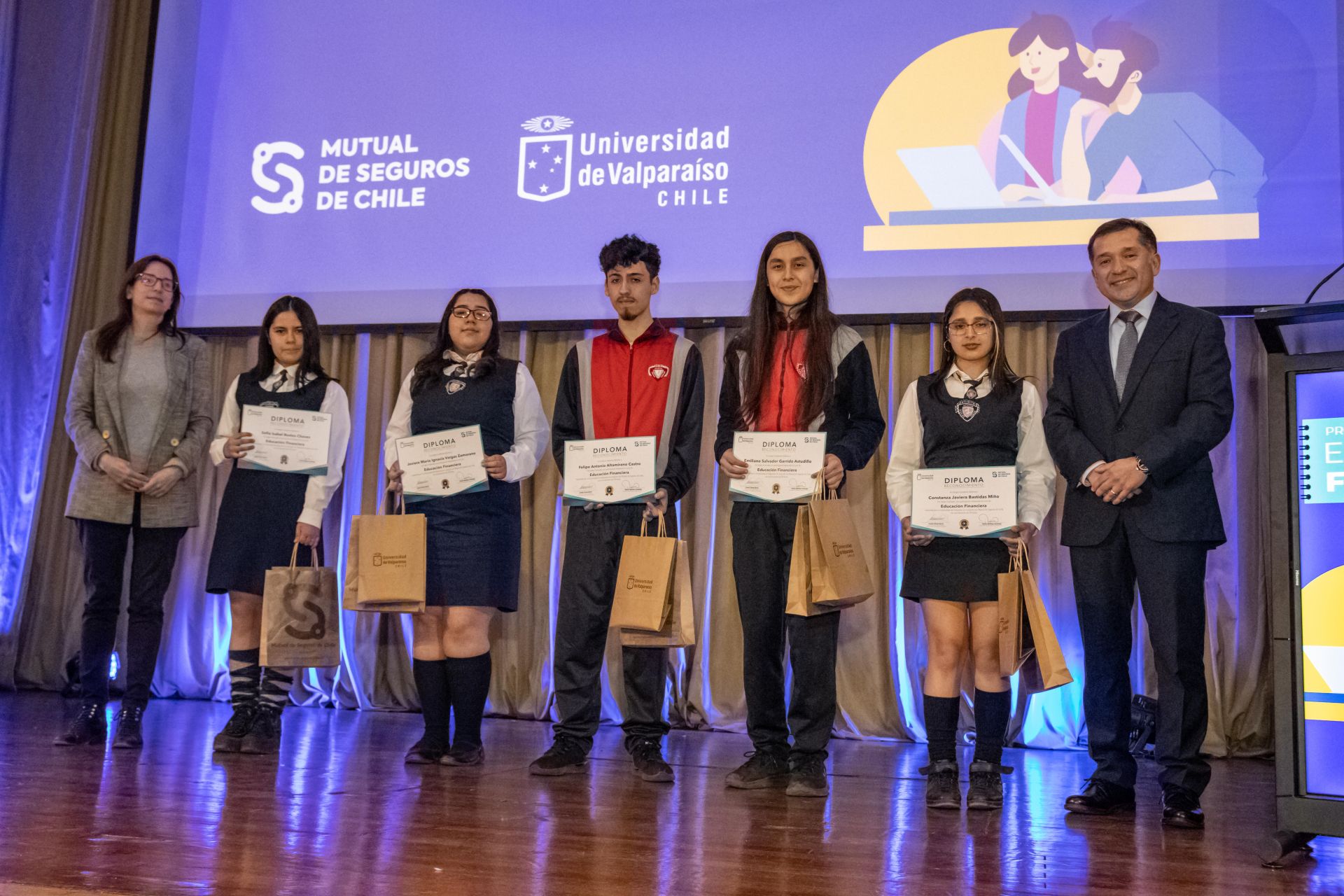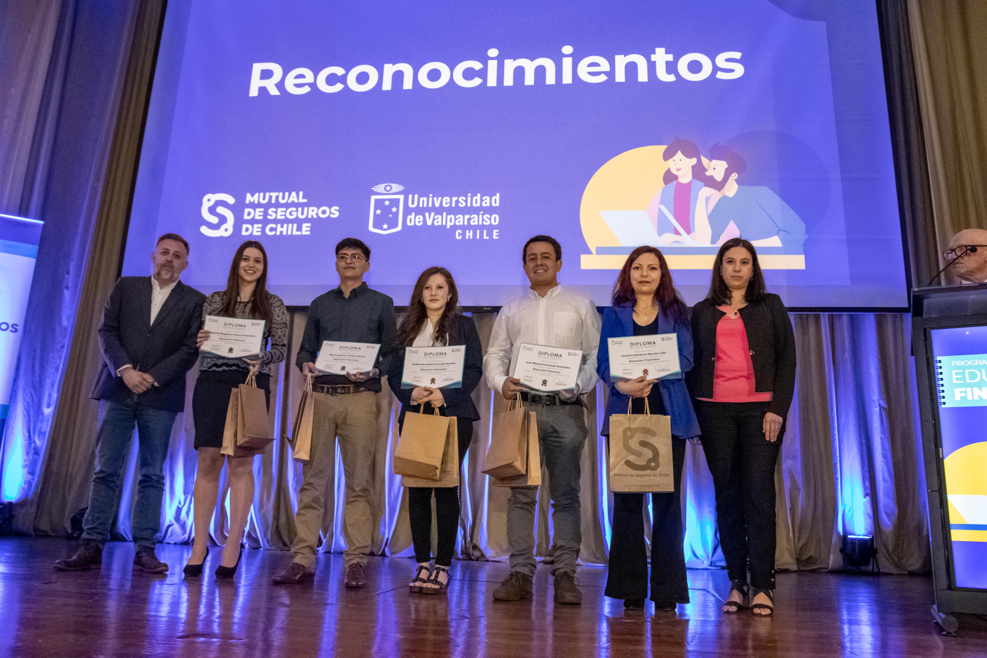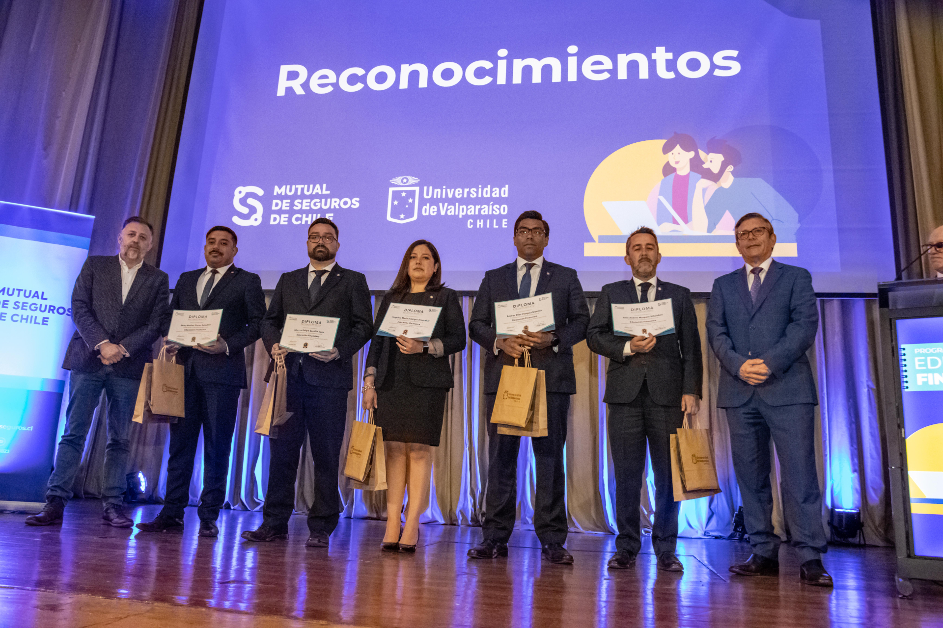 La ceremonia de entrega de diplomas incluyó distinciones a quienes aprobaron en forma destacada la versión 2023 del Programa de Educación Financiera de la UV y la Mutual de Seguros de Chile.