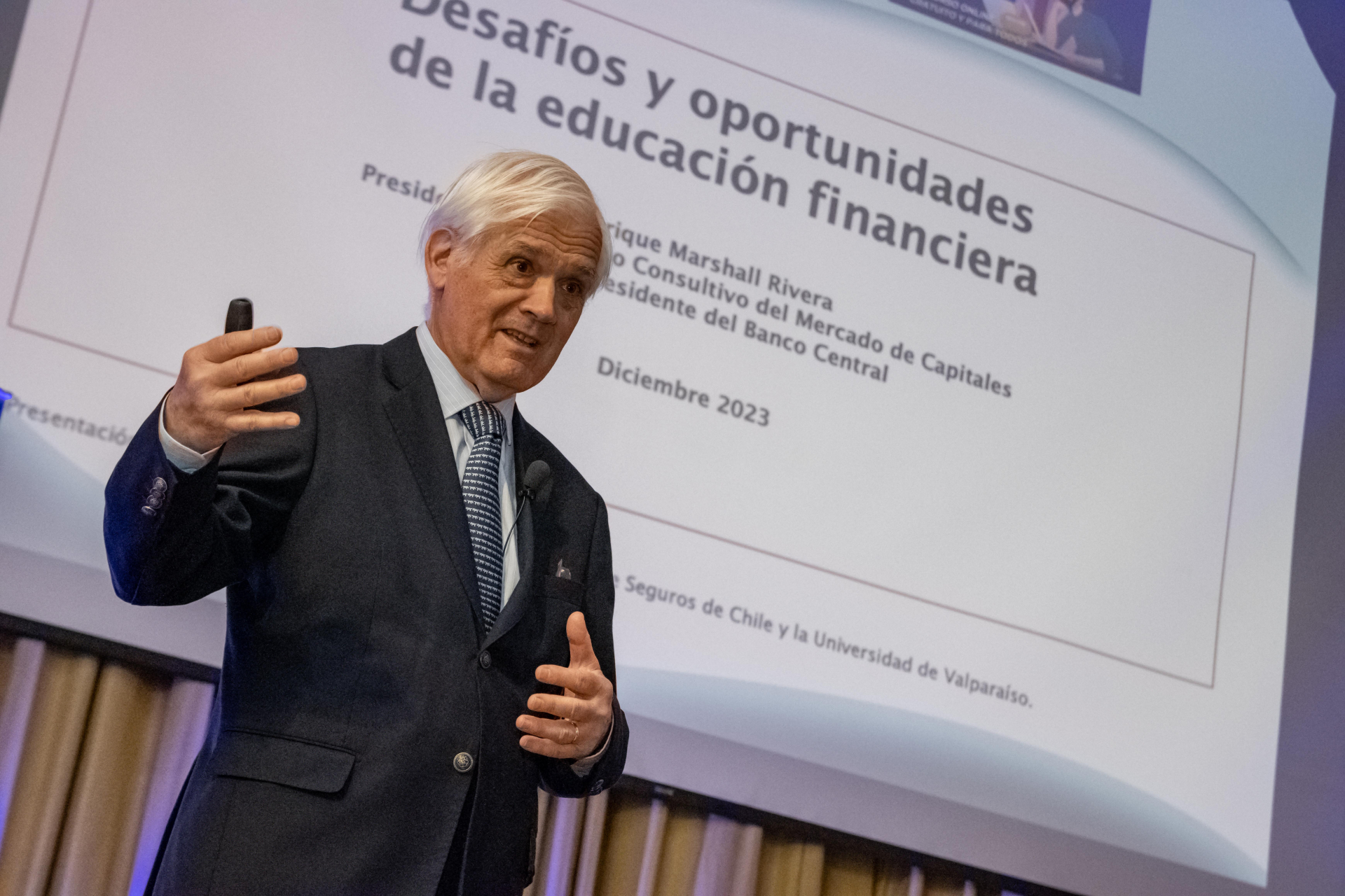 La ceremonia de graduación tuvo lugar en el Aula Magna Victorio Pescio y en ella intervino como expositor invitado el presidente del Consejo Consultivo del Mercado de Capitales y exvicepresidente del Banco Central de Chile, Enrique Marshall, quien dictó la conferencia titulada “Desafíos y oportunidades de la educación financiera”.