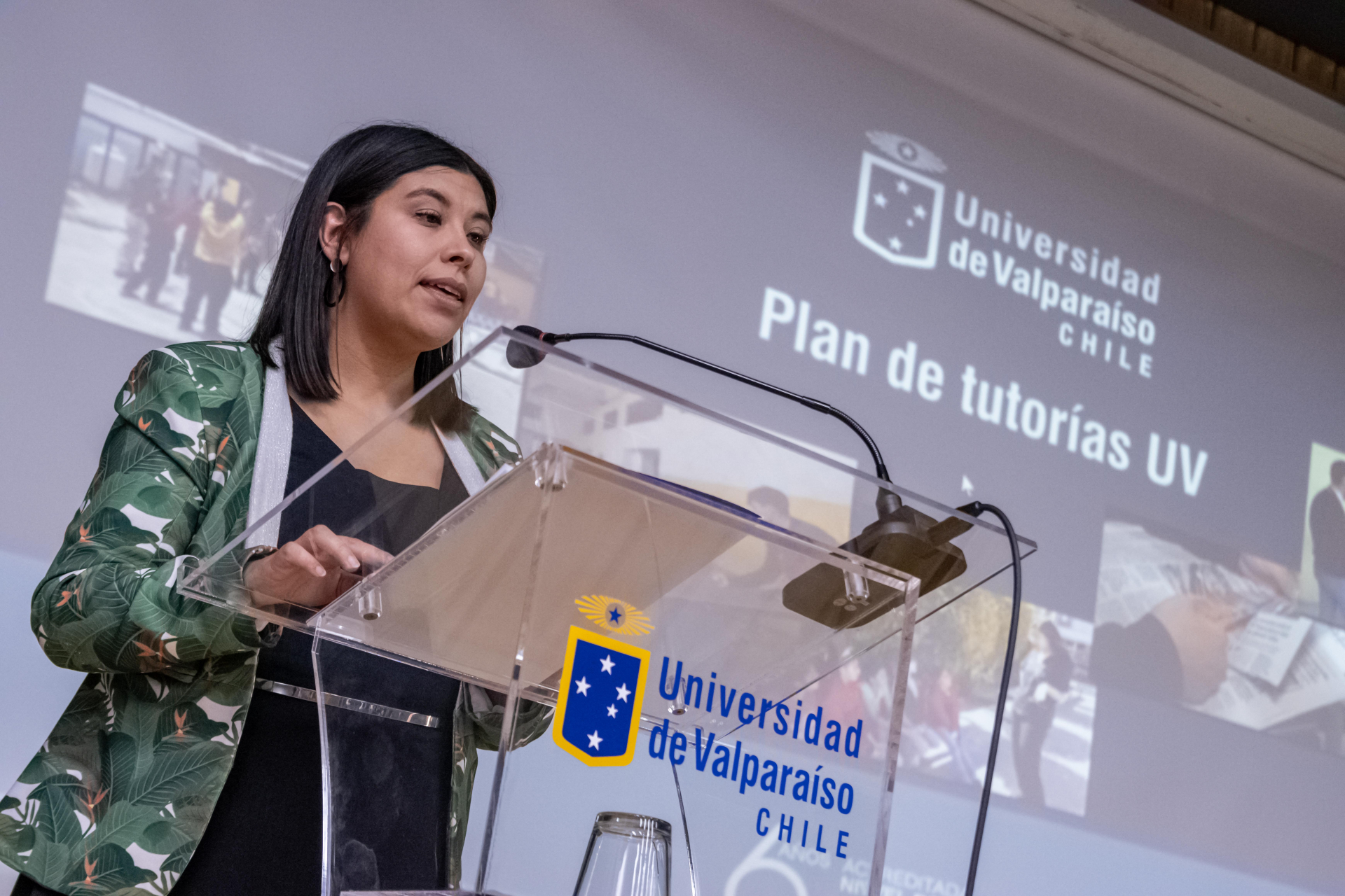 Paulina Barría, representante de la Unidad de Campos Clínicos y Prácticas profesionales de la Vicerrectoría Académica UV y coordinadora UV de la iniciativa, en la ceremonia de certificación del Plan Nacional de Tutorías 2023, realizada en el auditorio de la Facultad de Ciencias Sociales UV, destacó: “Iniciamos esta travesía con cinco establecimientos de la comuna de Valparaíso, reconociendo sus necesidades educativas y disciplinarias, estableciendo un vínculo con las carreras más afines a estas necesidades. Con el tiempo este vínculo se fortaleció y hoy celebramos la exitosa conexión con 17 colegios desde Valparaíso hasta La Ligua. Nuestros estudiantes han generado un impacto positivo, ofreciendo apoyo en habilidades y contenidos que han descendido desde el conocimiento hasta el corazón de quienes han recibido sus enseñanzas”.