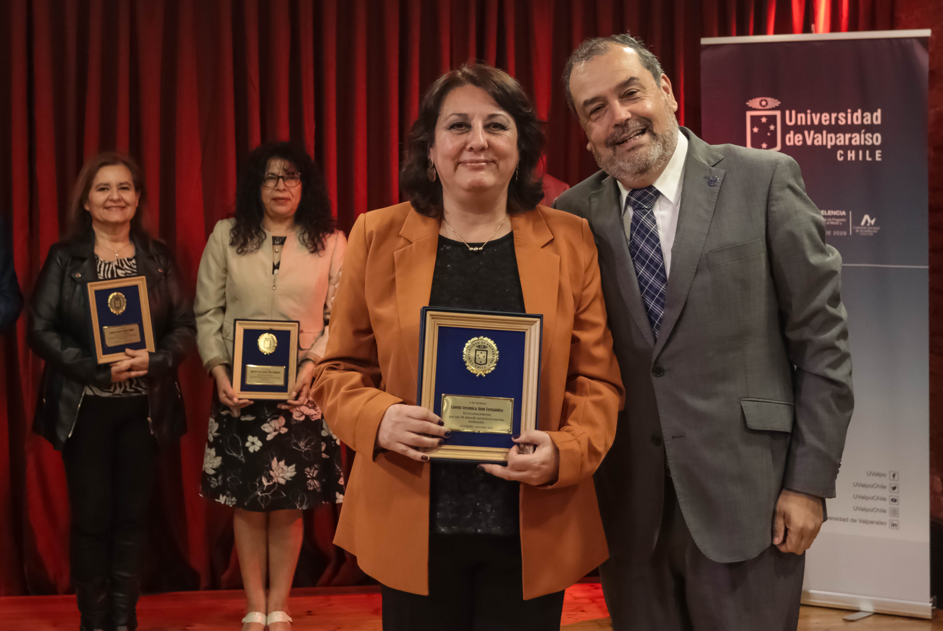 El acto contó con la presencia de directivas y directivos centrales, decanos y decanas y representantes de la Asociación de Funcionarios y la Asociación de Funcionarios Académicos de la UV, junto a personas cercanas a quienes recibieron el reconocimiento.