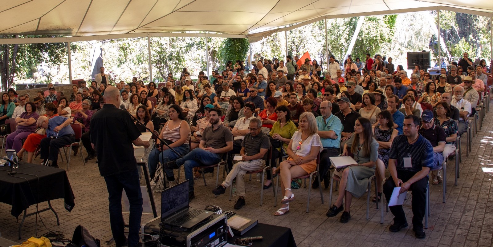 Un público cercano a las 400 personas asistió a la actividad con que Corporación Parque por la Paz Villa Grimaldi conmemoró el Día Internacional de los Derechos Humanos, en cuyo marco el profesor Fuad Hatibovic, de la Escuela de Psicología de la Universidad de Valparaíso, presentó el libro “Chile a cincuenta años del golpe de Estado del 11 de septiembre de 1973: reflexiones en torno al pasado y el presente”.