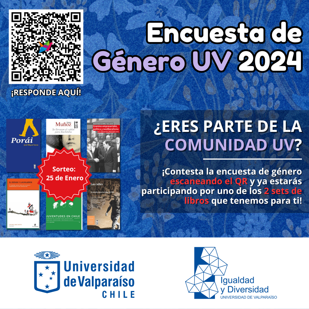 A fin de establecer la situación de las relaciones de género en la Universidad de Valparaíso, la Dirección de Igualdad y Diversidad (DID) está desarrollando la Encuesta de Género UV 2024. Para incentivar la participación, se sortearán dos sets de libros entre quienes respondan el cuestionario.