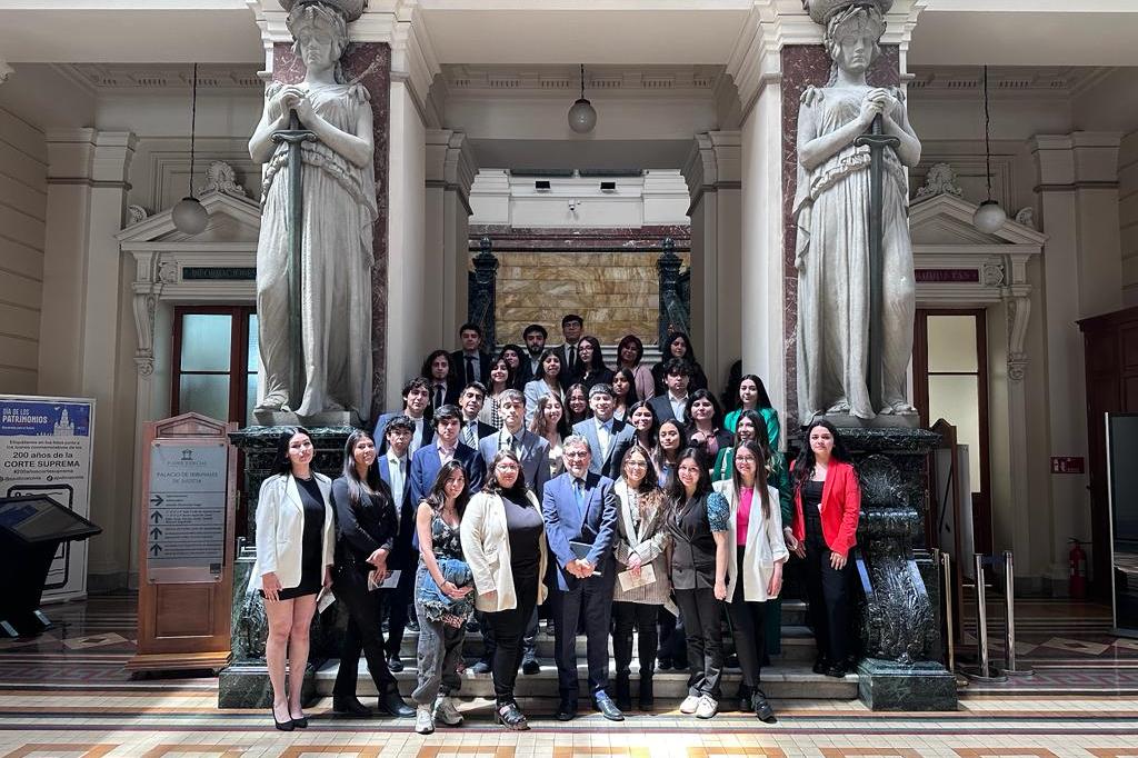 En la Excelentísima Corte Suprema los estudiantes y el profesor Juan Carlos Ferrada realizaron un recorrido por las dependencias, destacando la arquitectura del lugar. Además, en esta visita los estudiantes tuvieron la oportunidad de conocer y conversar con el presidente del Tribunal Supremo, ministro Juan Eduardo Fuentes, quien les relató brevemente parte de su experiencia como parte del máximo tribunal del país.