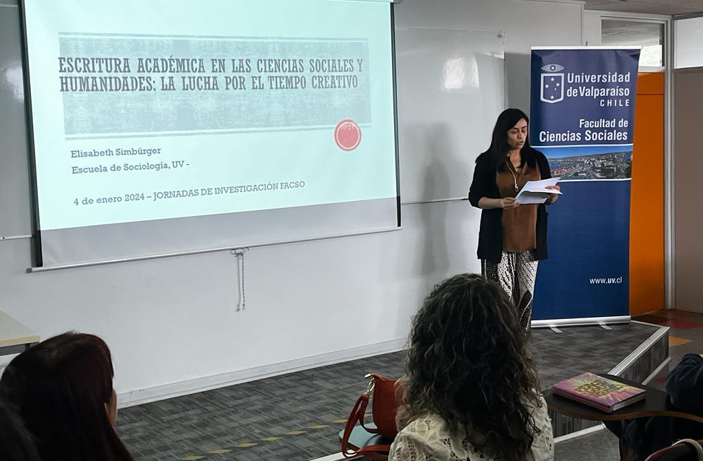 Cerca de sesenta docentes y estudiantes de la Facultad de Ciencias Sociales de la Universidad de Valparaíso se dieron cita en la Segunda Jornada de Investigación organizada por la unidad académica, y que contó con la presencia del decano de la Facso, Gonzalo Lira; la secretaria de Facultad, Cecilia Concha, y el director de la Escuela de Psicología, Carlos Varas.