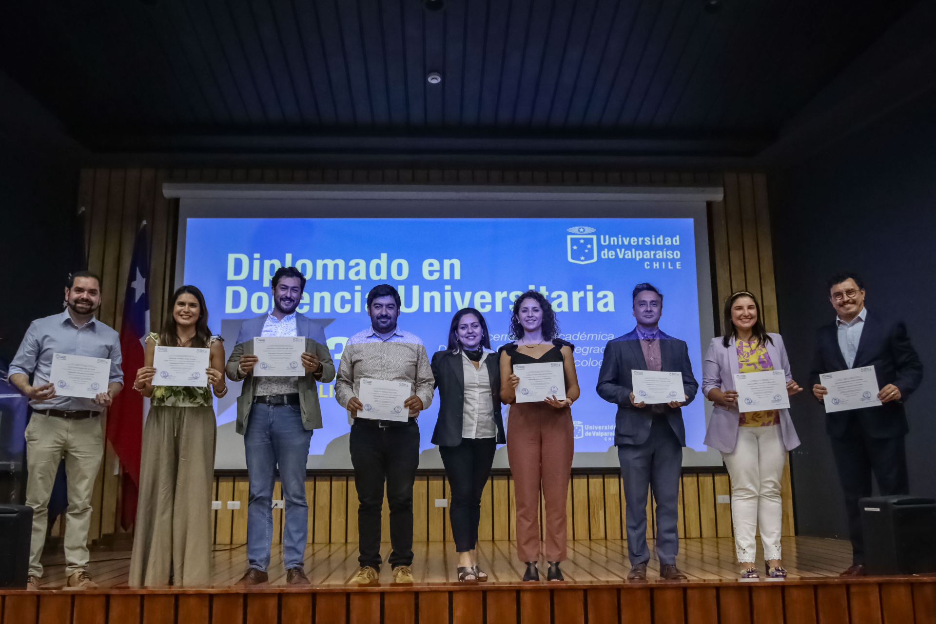 En una ceremonia que estuvo encabezada por el vicerrector académico, Carlos Becerra, se realizó el cierre de la octava edición del Diplomado en Docencia Universitaria. En la versión 2023 del programa, se graduaron 47 participantes, pertenecientes a ocho Facultades y 18 unidades académicas, con representación de diez participantes del Campus San Felipe y uno del Campus Santiago, así como dos funcionarios no académicos.