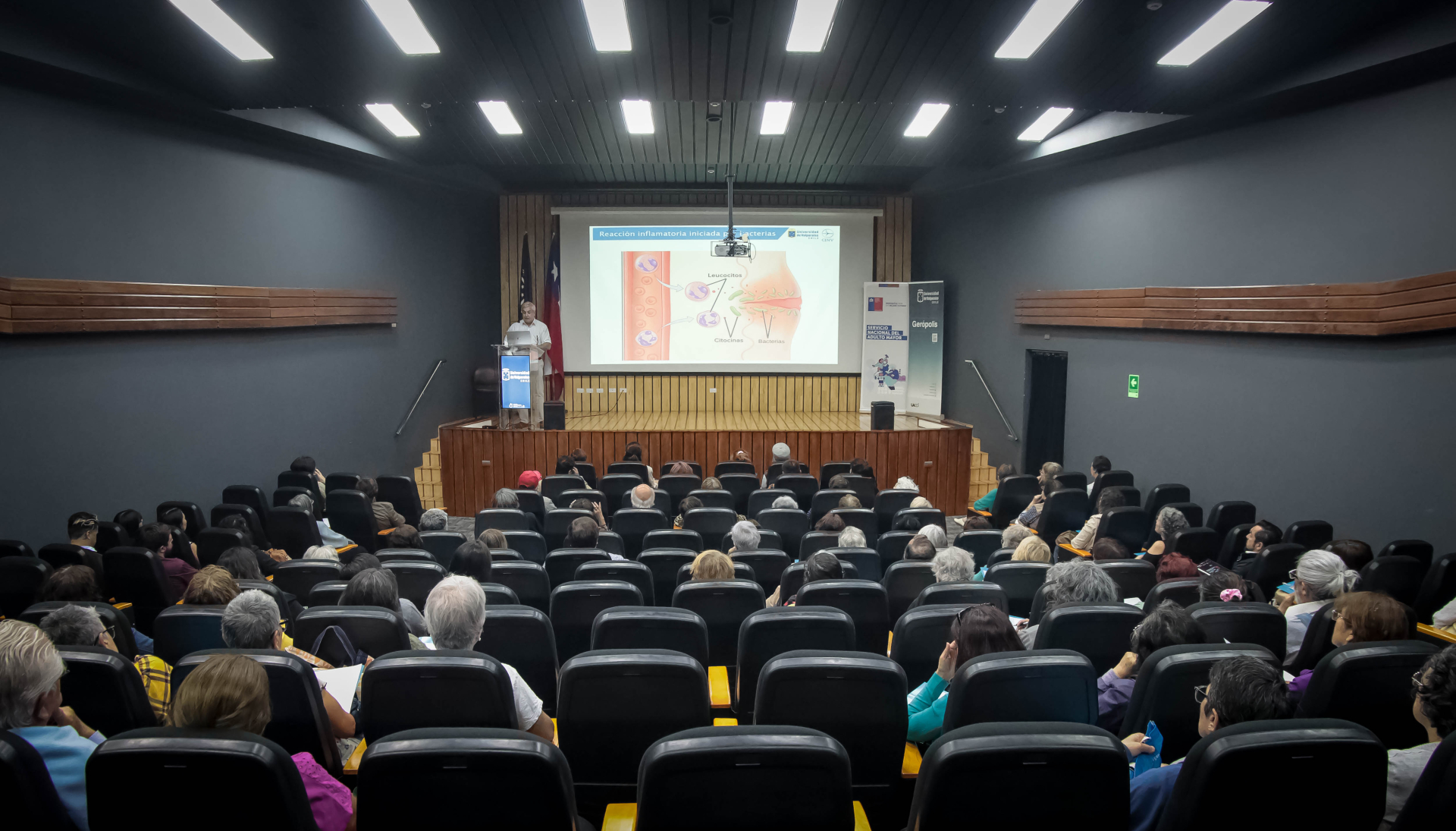 La XIV Escuela de Verano “Las personas mayores a la Universidad” incluyó la conferencia titulada “Participación de la respuesta inflamatoria en algunas enfermedades más frecuentes en edades avanzadas”, que dictó el doctor Juan Carlos Sáez, director del Centro Interdisciplinario de Neurociencias de Valparaíso y profesor titular del Instituto de Neurociencias de la Facultad de Ciencias de la UV.