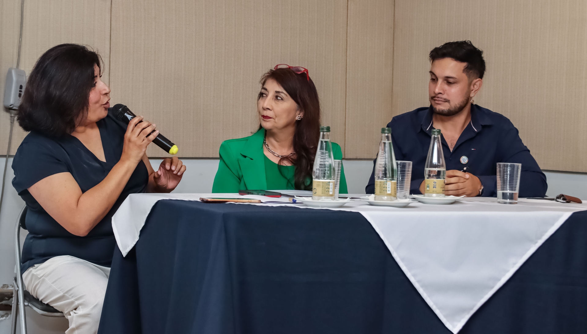 Mas tarde correspondió intervenir a la representante de los Departamentos de Género y de Derechos Humanos, Medio Ambiente y Biodiversidad de la sede regional del Colegio Médico, Catalina Paut y Laura Norambuena, quienes integraron una segunda mesa de conversación, en la cual abordaron el tema del enfoque de derechos desde la APS y la salud familiar. Moderó esta instancia la profesora Astrid Arévalo.