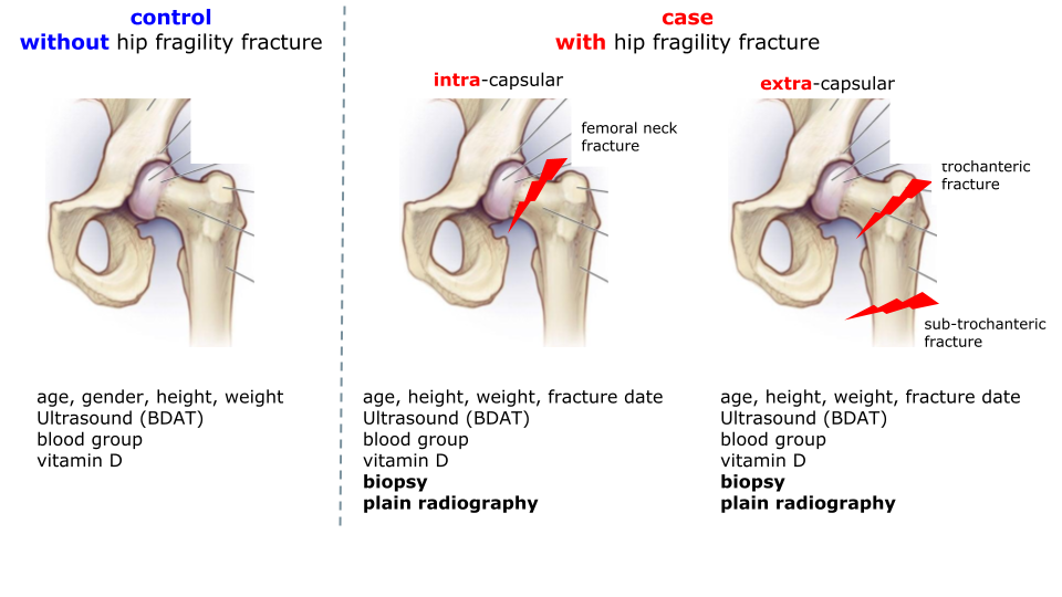El investigador indica que “se pretende explorar la asociación entre estos dos tipos de fractura por fragilidad de cadera con toda la demás información accesible: ultrasonido (parámetros BDAT), biopsia, radiografía simple, grupo sanguíneo, nivel de vitamina D, edad, sexo, altura y peso”.