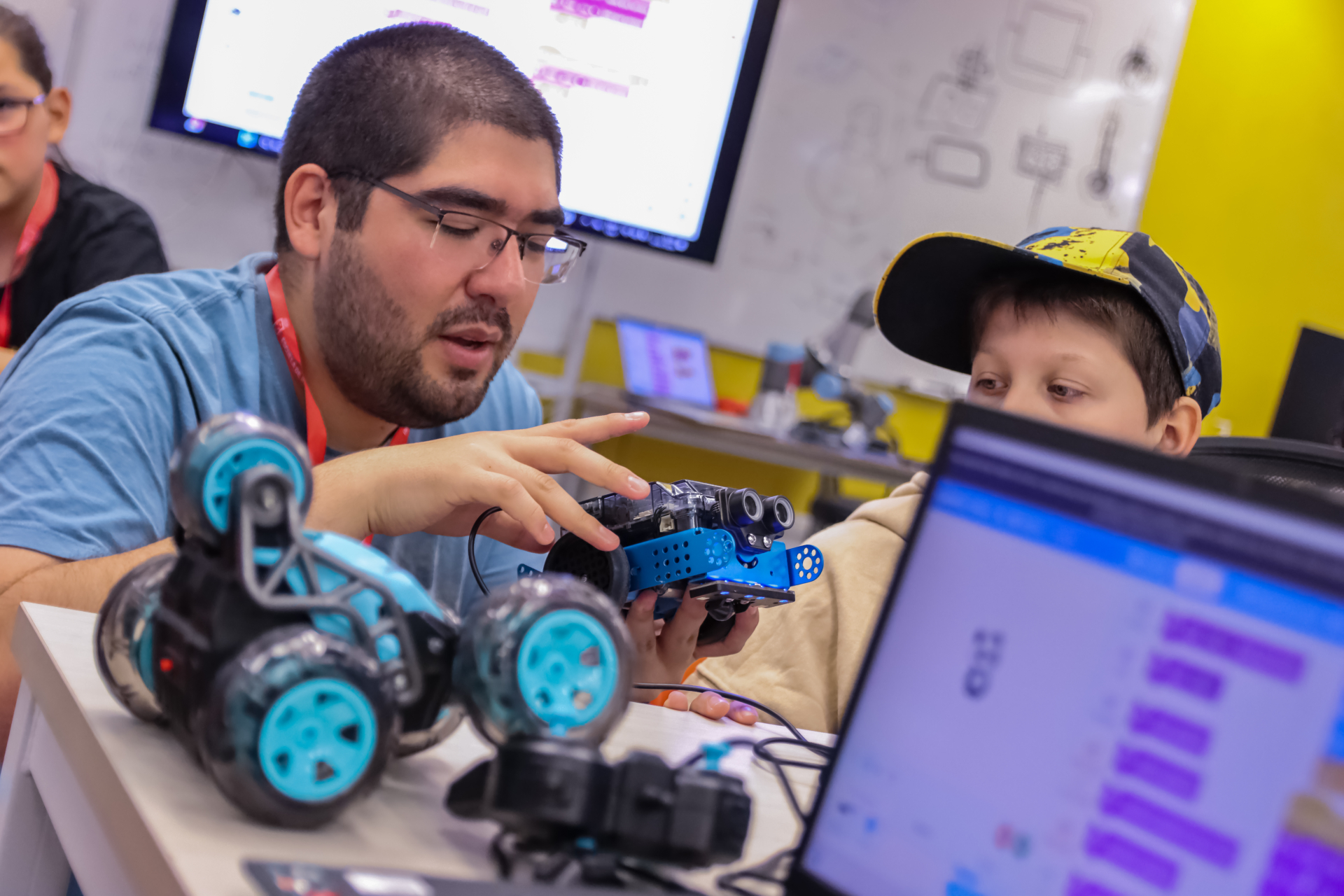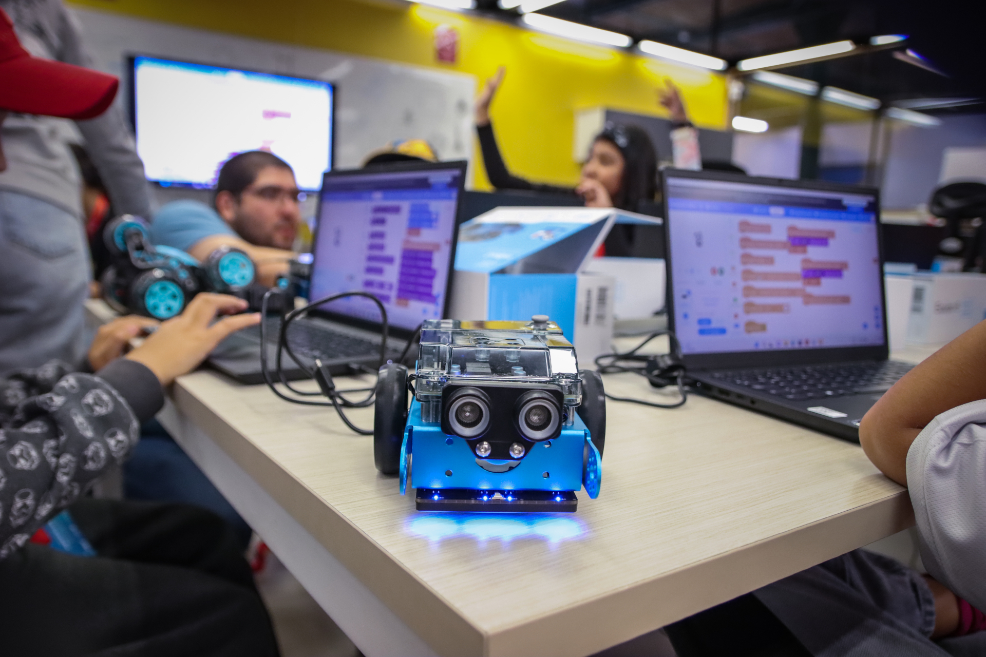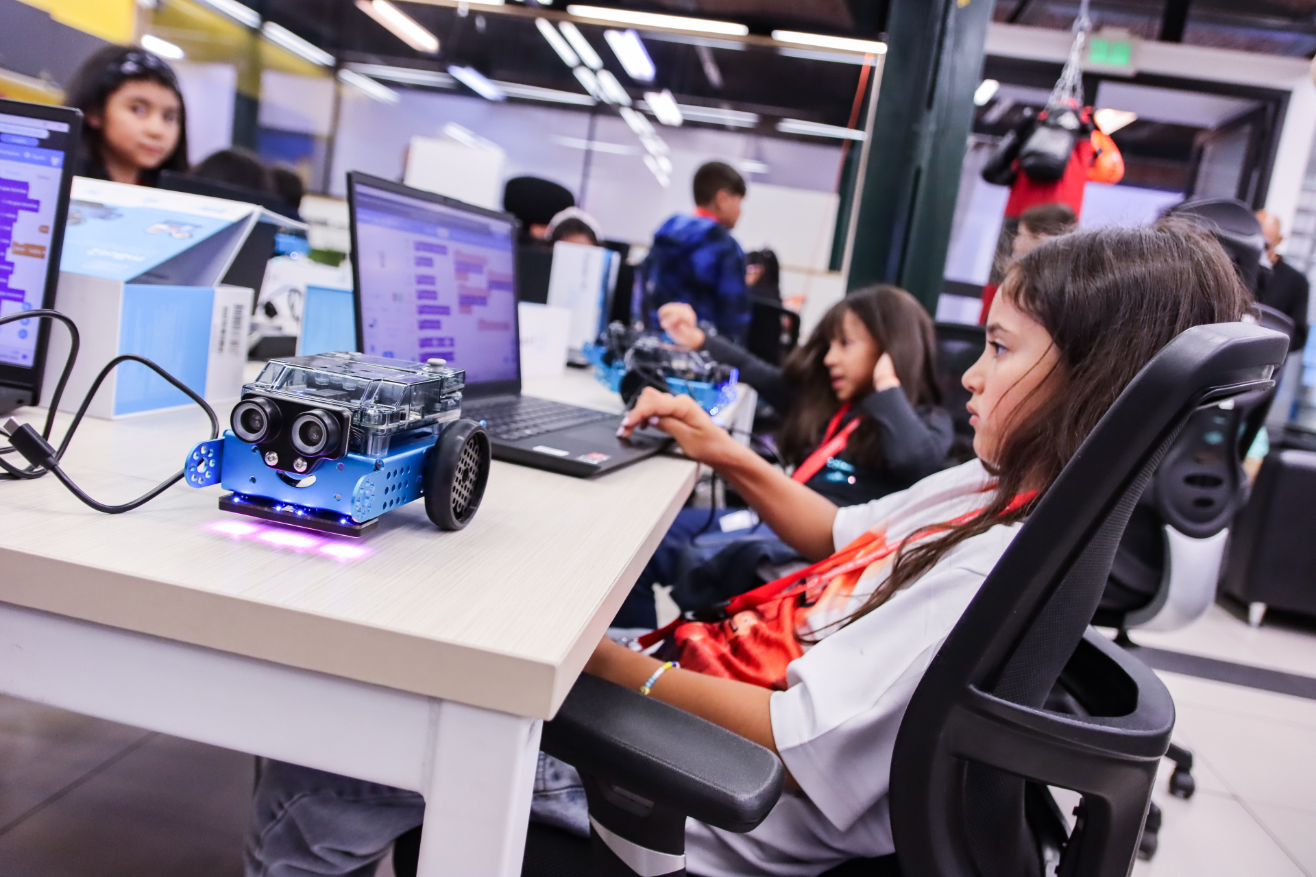 De lunes a viernes y durante tres horas por día, un grupo de niños de entre ocho y doce años de edad, hijos de funcionarios y funcionarias de la UV, asisten al Taller de Programación y Robótica que se realiza en el FabLab, diseñado y dictado por estudiantes de Ingeniería Civil Informática.