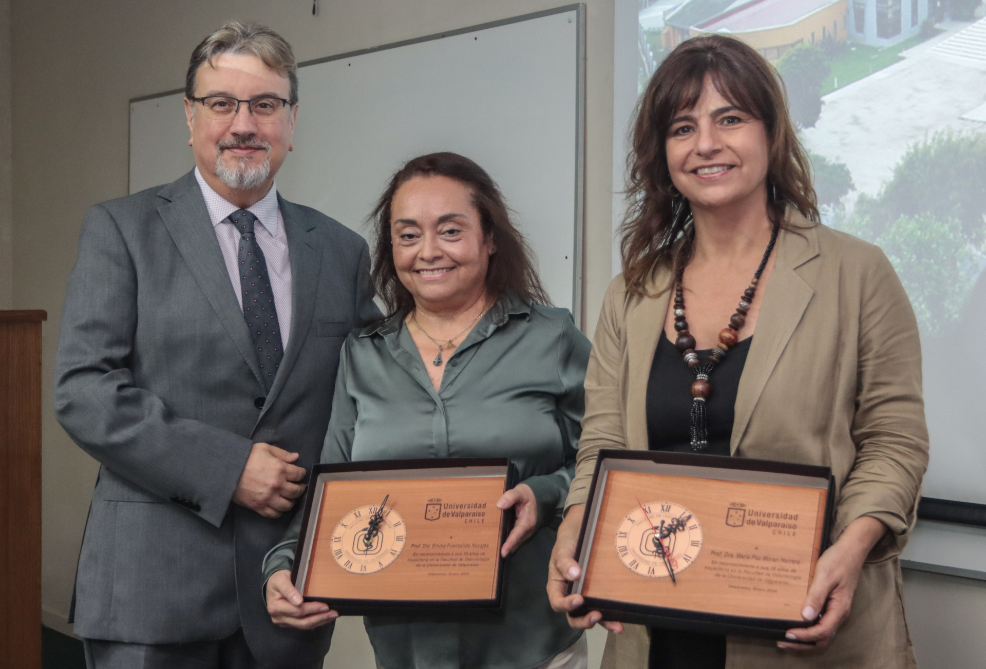 Durante la ceremonia, se otorgaron reconocimientos por 20 y 30 años de servicio, así como a aquellos que se acogieron a la Ley de Incentivo al Retiro durante el período 2023. Además, se distinguió a la profesora Marjorie Borgeat por la obtención del grado académico de Doctora en Ciencias Odontológicas, por la Universidad de Chile, siendo reconocida como la mejor egresada de toda la Promoción 2023 de la Escuela de Graduados de dicha casa de estudios.