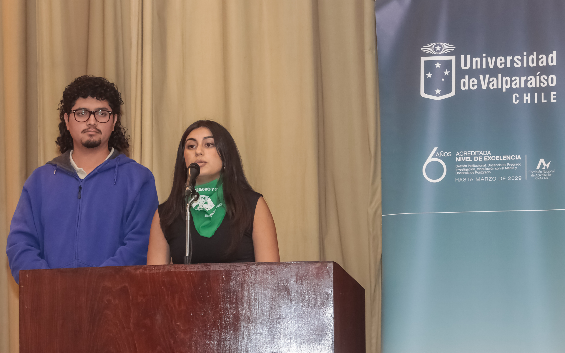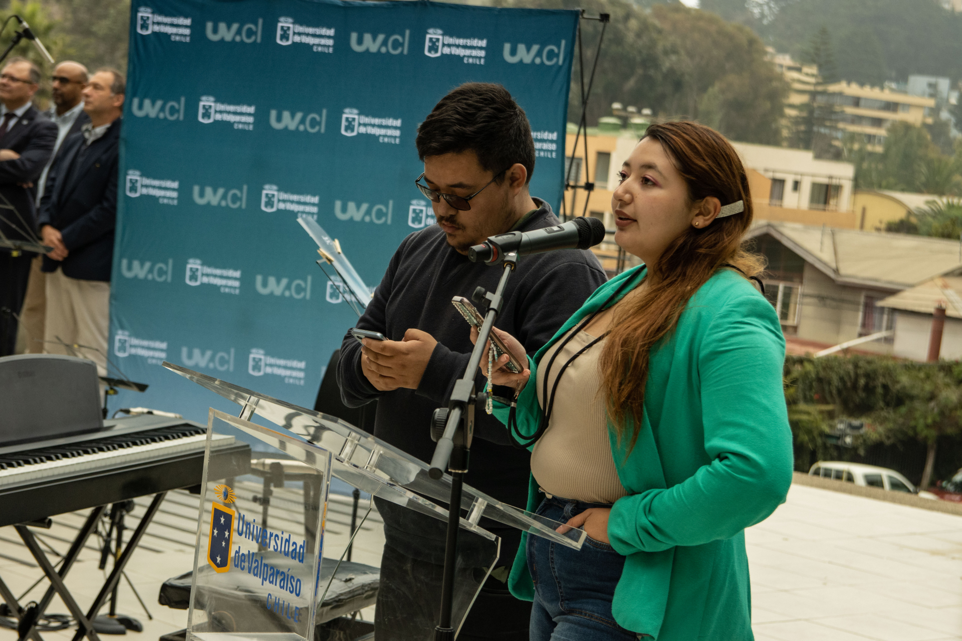 El acto tuvo lugar en el Campus de la Salud, y fue encabezado por el rector Osvaldo Corrales, quien en la ocasión estuvo acompañado por el vicerrector académico Carlos Becerra; los decanos Antonio Orellana (de Medicina) y Ricardo Bravo (de Ciencias del Mar y Recursos Naturales), y por el secretario general y la secretaria ejecutiva de la FEUV, Samuel Briceño y Tamara Oteíza, respectivamente.