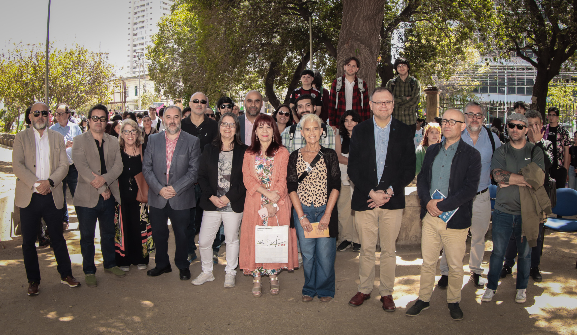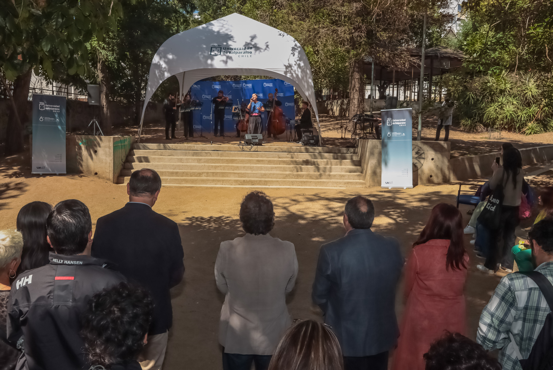 En el parque El Litre, en sector Almendral de Valparaíso, el rector estuvo acompañado por los decanos de Humanidades y Educación, Pablo Aravena, y de Ciencias Sociales, Gonzalo Lira. En representación de la FEUV, estuvo presente Matías Romo, secretario de Asuntos Académicos.