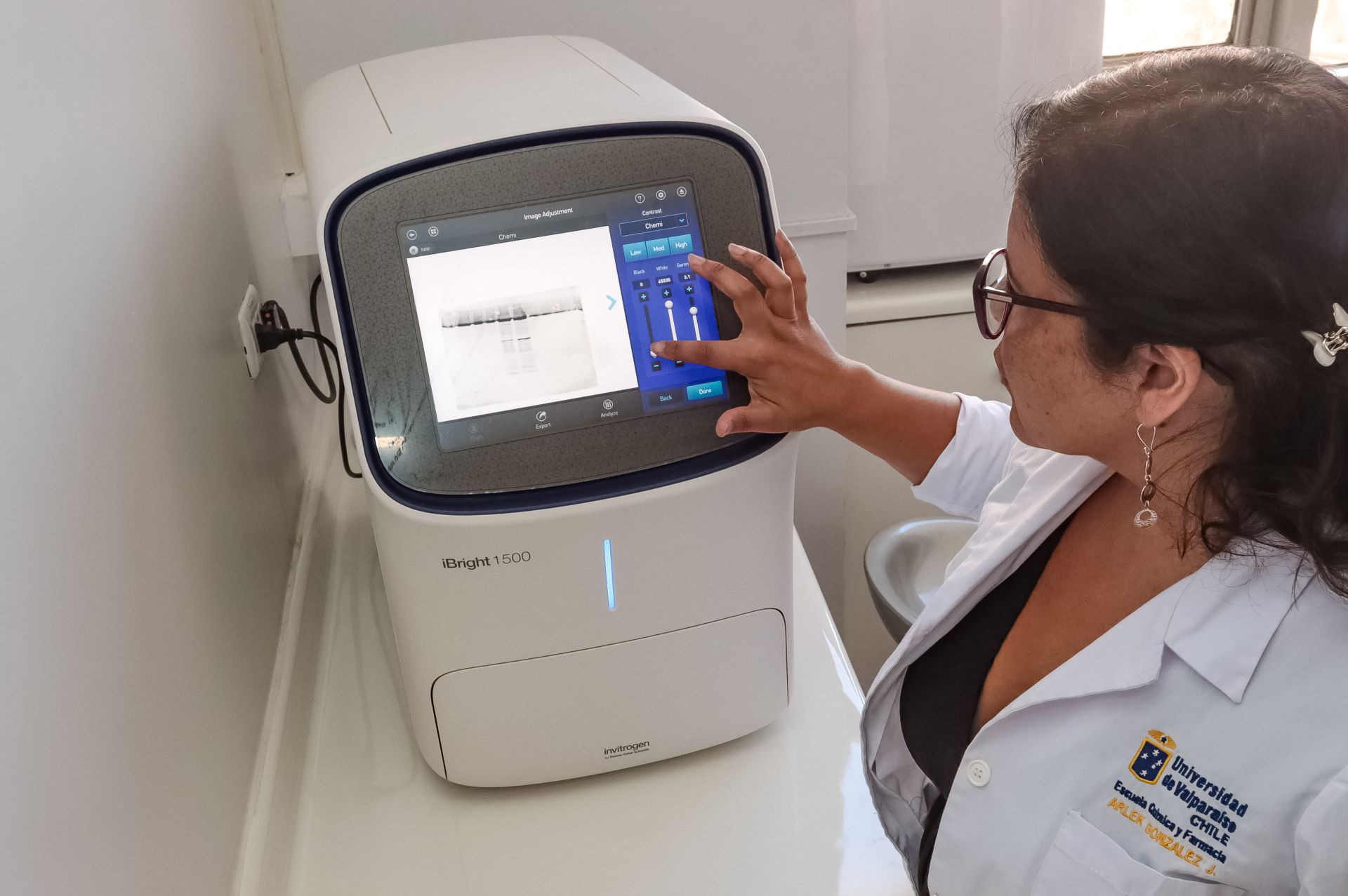 La habilitación del nuevo laboratorio “Plataforma para el procesamiento, documentación y análisis de Western Blots", que dirige la doctora Arlek González, académica de la Facultad de Farmacia de la Universidad de Valparaíso, se presenta y proyecta como un componente esencial para el avance de la investigación en los campos de la bioquímica y la biología molecular. Este laboratorio, concebido como un significativo aporte para la investigación, ha sido dotado con tres equipos de última generación, que desempeñarán un papel relevante al optimizar los procesos de análisis de proteínas.