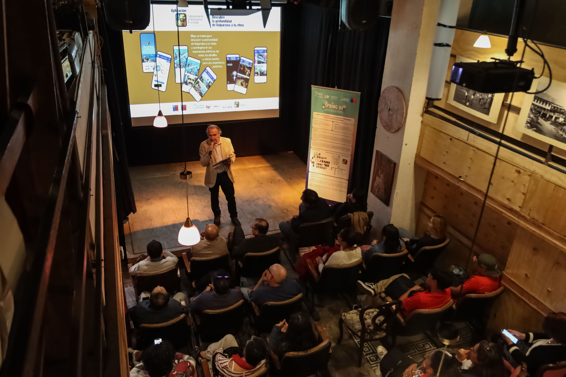 La presentación se realizó en el Café Teatro Valparaíso Profundo de Valparaíso, con la presencia del rector de la UV, Osvaldo Corrales; el vicerrector de Vinculación con el Medio, Carlos Lara; el decano de la Facultad de Arquitectura, Alejandro Witt, y el director de la Escuela de Diseño, Óscar Acuña, junto a académicos y estudiantes.