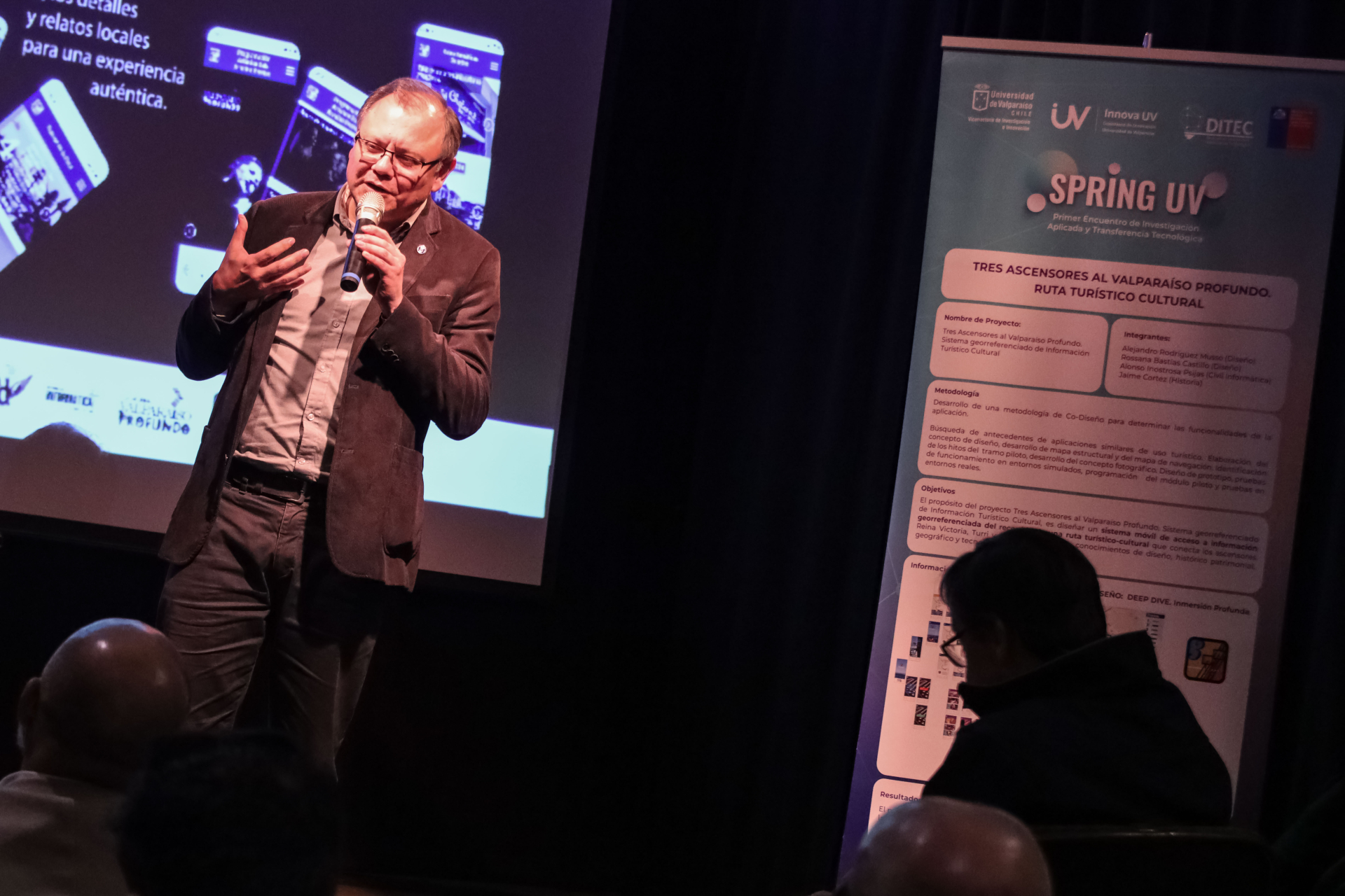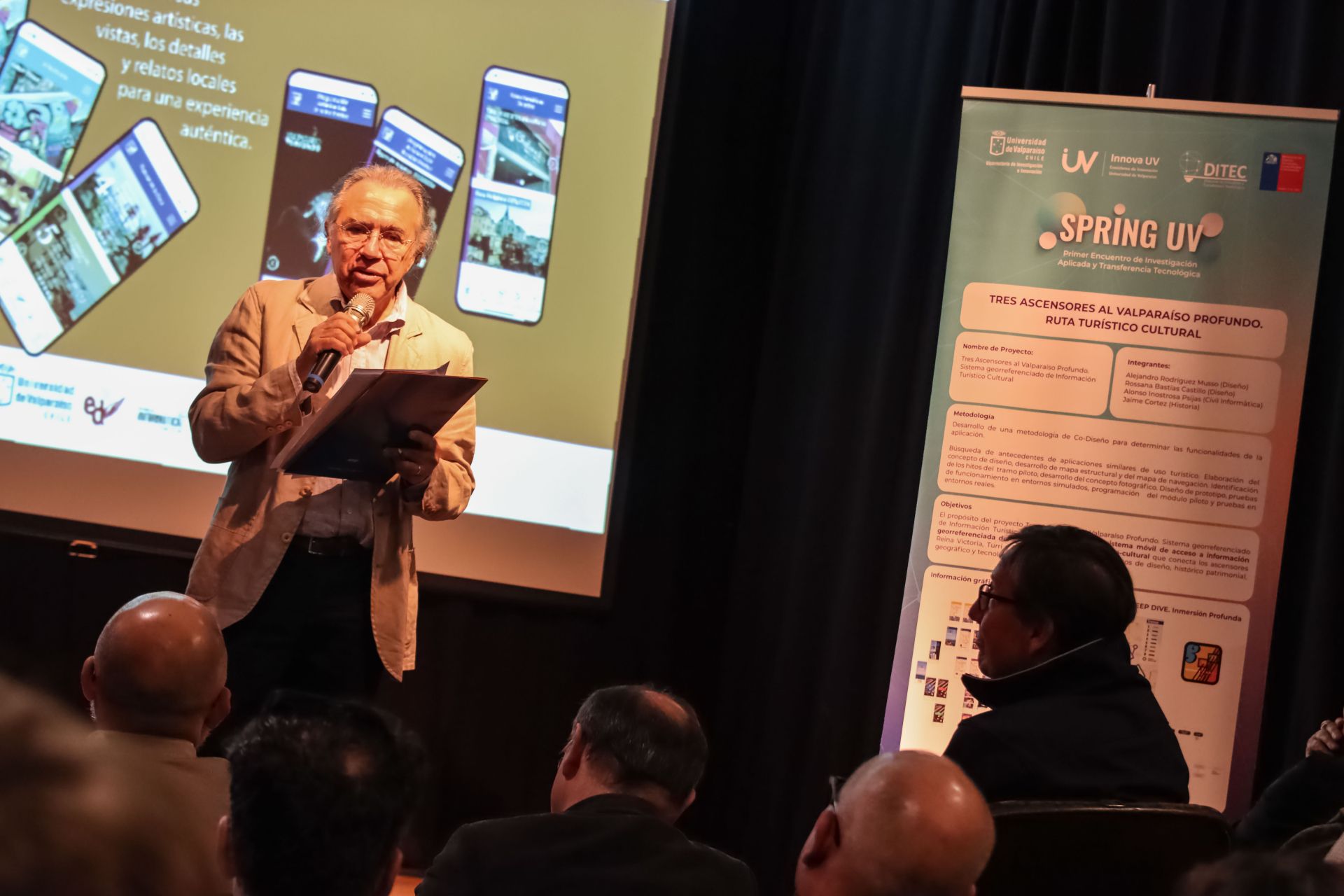 La App turística cultural “3 Ascensores al Valparaíso Profundo” fue diseñada por los académicos Alejandro Rodríguez y Rossana Bastías, de la Escuela de Diseño, junto a los profesores Alonso Inostrosa, de la Escuela de Ingeniería Informática; Jaime Cortez, investigador adjunto del Instituto de Historia, y Mariena Rumié, de la Escuela de Diseño.