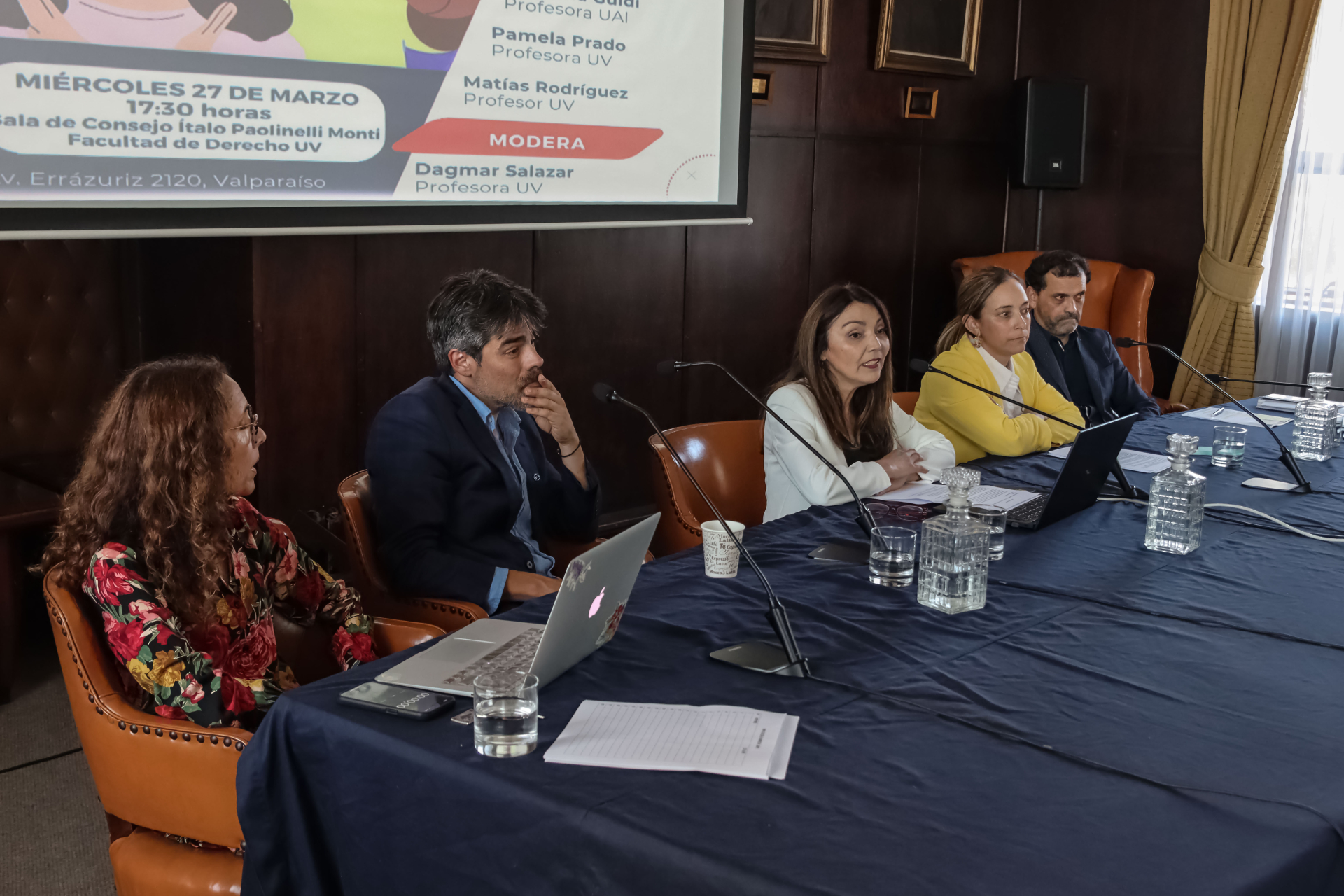 En la instancia participaron Matías Rodríguez, profesor y presidente del Departamento de Derecho del Trabajo de la Escuela de Derecho de la UV; Caterina Guidi, académica de Derecho Civil de la Universidad Adolfo Ibáñez; Sergio Gamonal, profesor de Derecho del Trabajo de la UAI, y Pamela Prado, académica de Derecho Civil de la UV. El panel fue moderado por Dagmar Salazar, profesora de Derecho del Trabajo de la UV.