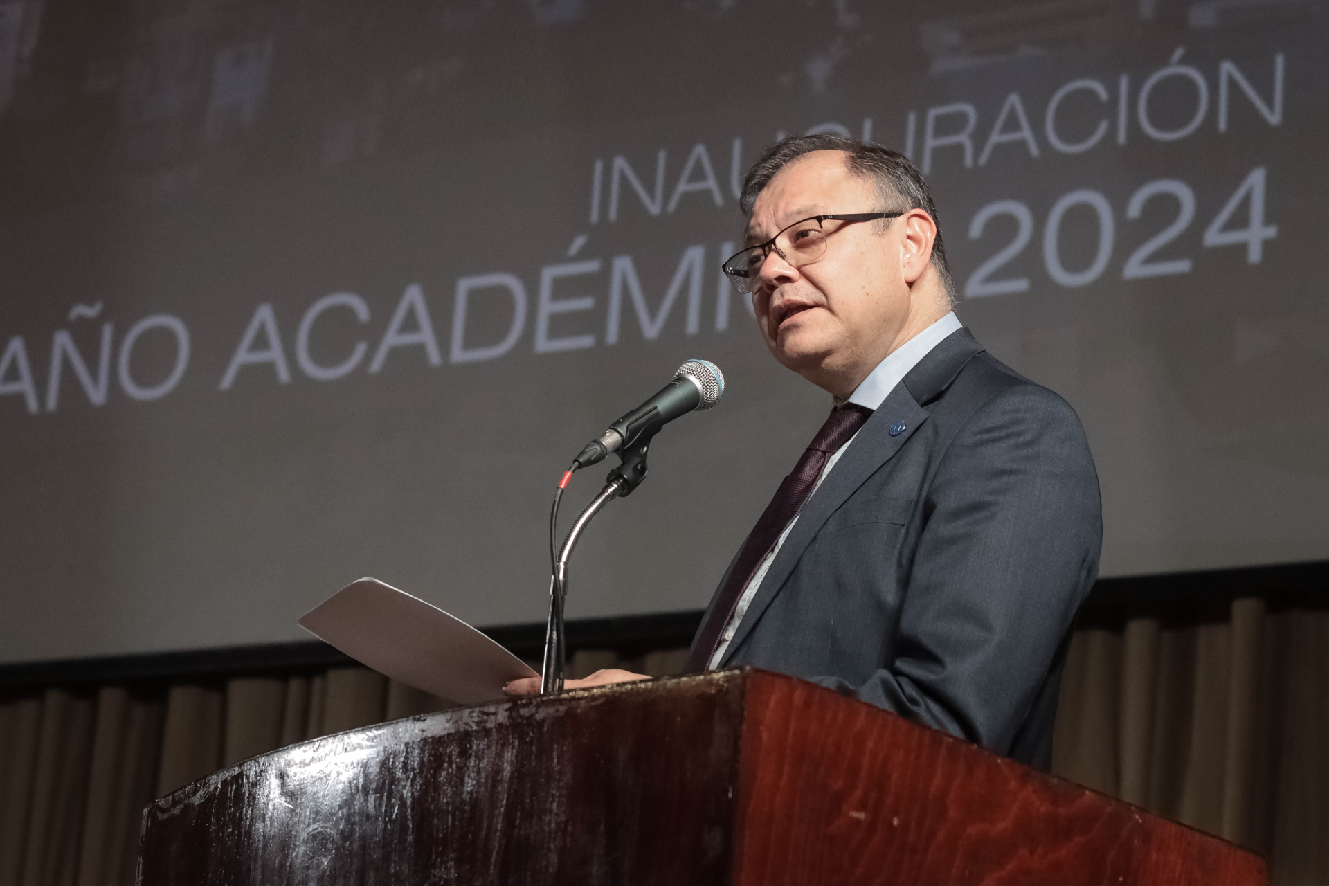 Apuntó que “en la inauguración del año académico las universidades solemos levantar la vista a lo que pasa en nuestro entorno, y por eso cuando invitamos a personalidades a participar de este acto tratamos de que vengan de un ámbito ajeno al ámbito académico, precisamente para refrescar nuestra mirada, para nutrirnos con nuevas perspectivas acerca de lo que pasa en nuestro entorno, y a partir de ahí también obtener aprendizajes que nos permitan, como universidad, adaptarnos a esos cambios. Ese es el sentido que tiene la invitación que le hemos extendido a Daniel Matamala, y por cierto agradecemos mucho que él haya tenido la gentileza de aceptarla y compartir con nosotros el día de hoy”.
