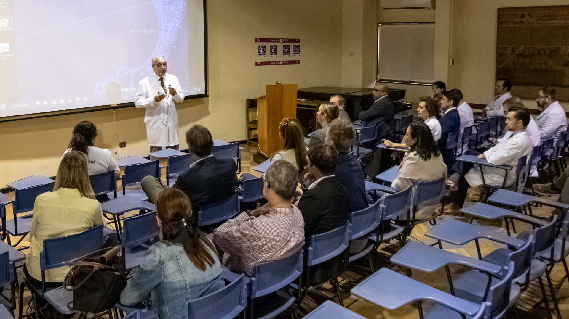 La visita de la delegación internacional contempló una reunión con las autoridades universitarias seguida de un recorrido por las instalaciones de la Facultad de Odontología, especialmente las áreas de atención clínica, laboratorios y biblioteca, entre otros espacios destacados.