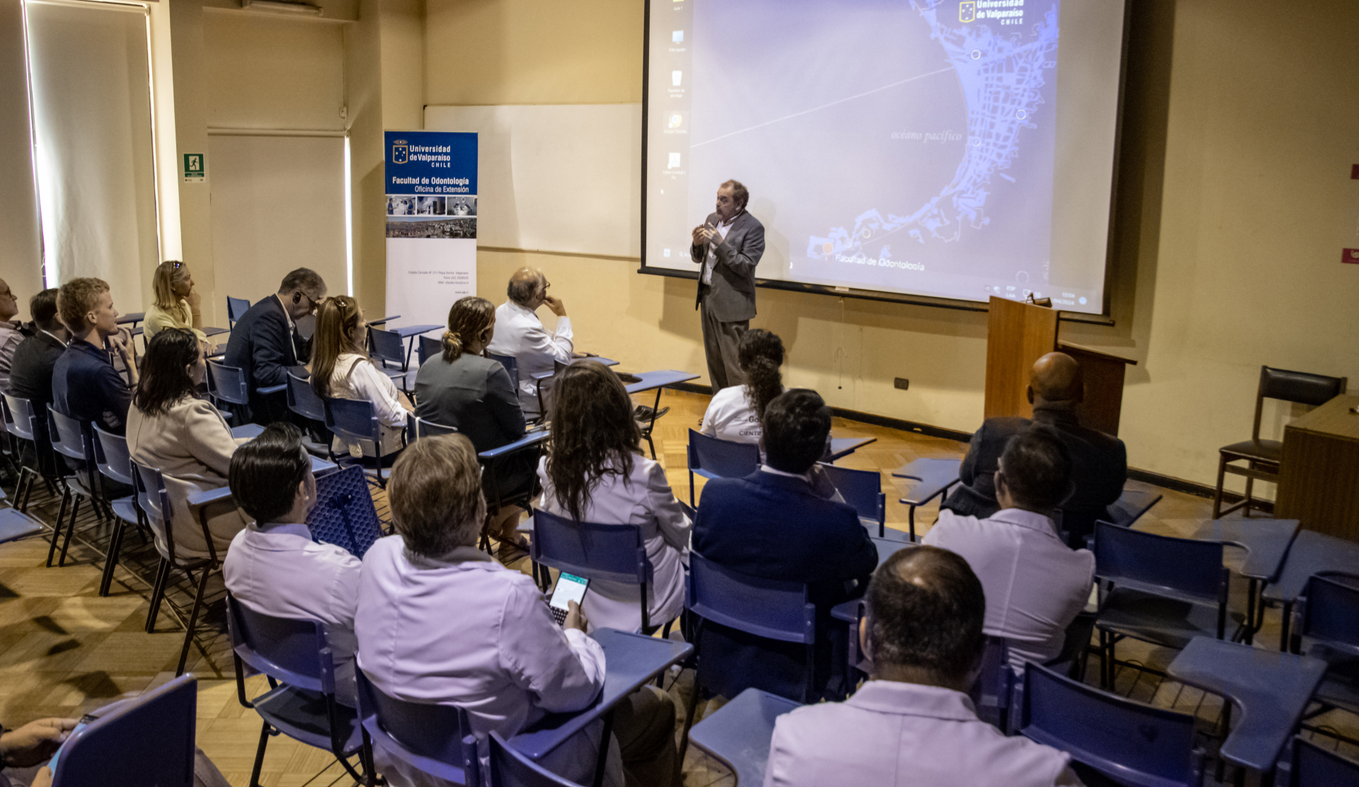 La delegación fue recibida por el decano de la Facultad de Odontología, Gastón Zamora, junto al prorrector de la Universidad de Valparaíso, Christian Corvalán. Les acompañaron el vicerrector académico, Carlos Becerra; el vicedecano de Odontología, Ricardo Moreno; la directora de la Escuela de Odontología, Patricia Nazar; el director de Campos Clínicos, Jaime Jamett; el director de la Unidad de Servicios Clínicos, Carlos Delpiano; el director de Relaciones Institucionales, José Luis Meza; la directora de la Escuela de Fonoaudiología, Daphne Marful; el director de la Escuela de Graduados de la Facultad, Rodrigo Bahamondes; el coordinador de Vinculación con el Medio de la Facultad, Mauricio Vivanco, junto a directivos, docentes y funcionarios de la unidad académica.