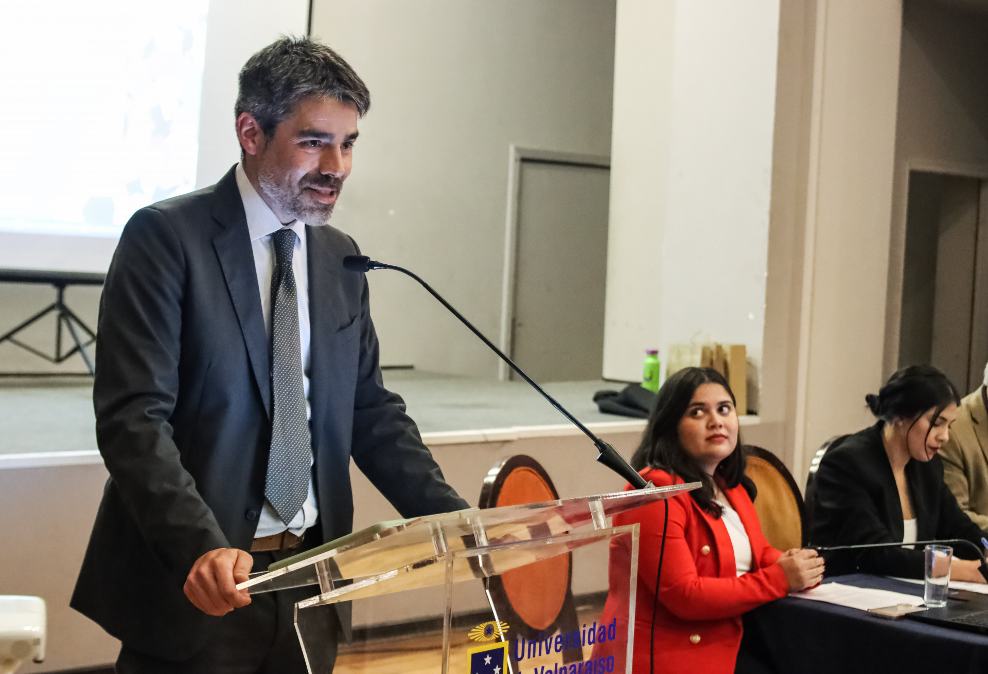 Posteriormente intervino el profesor Matías Rodríguez, presidente del Departamento de Derecho del Trabajo y Seguridad Social de la UV, quien entregó sus agradecimientos a los estudiantes pertenecientes a la Escuela Sindical, por el esfuerzo de coordinar la actividad con esmero y disciplina, así como también a la Municipalidad de Viña del Mar por facilitar las dependencias del hotel O’Higgins, y al personal de la Facultad de Derecho por la colaboración.