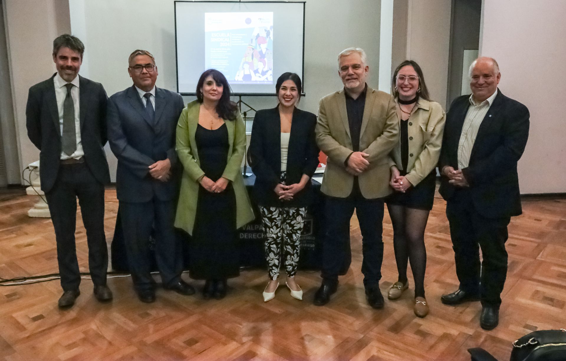 La actividad fue encabezada por el decano de la Facultad de Derecho de la Universidad de Valparaíso, Ricardo Saavedra, junto a la vicedecana de la Facultad de Derecho, Inés Robles, y el presidente del Departamento de Derecho del Trabajo y Seguridad Social de la UV, Matías Rodríguez. Les acompañaron la presidenta de la Cámara de Diputadas y Diputados, Karol Cariola; el presidente nacional de la Agrupación Nacional de Empleados Fiscales (ANEF), José Pérez, y la asesora legislativa de la Subsecretaría del Trabajo, Sofía Argo, quienes expusieron durante la jornada.