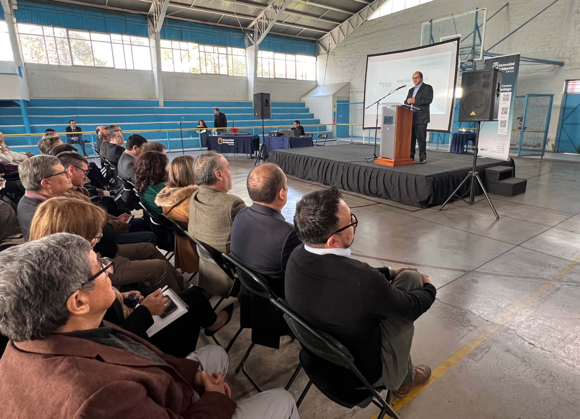 El saludo inicial estuvo a cargo del director del Campus Santiago, Jaime Vera, quien resaltó el fuerte vínculo que tiene la Universidad de Valparaíso con la comuna de San Miguel, donde “mantenemos un convenio de colaboración recíproca con la municipalidad”. Asimismo, relató que la institución está presente en un emblemático edificio de esta comuna desde el año 2008, “siempre con énfasis en formar no solamente excelentes profesionales, sino también mejores personas, comprometidas con la sociedad y el desarrollo del país. (…) Nos enorgullece decir que a la fecha en el Campus Santiago se han titulado alrededor de tres mil profesionales. Y esperamos seguir ofreciendo oportunidades a más jóvenes para que puedan estudiar y formarse integralmente en una universidad estatal, pública y de larga trayectoria como es la Universidad de Valparaíso”.