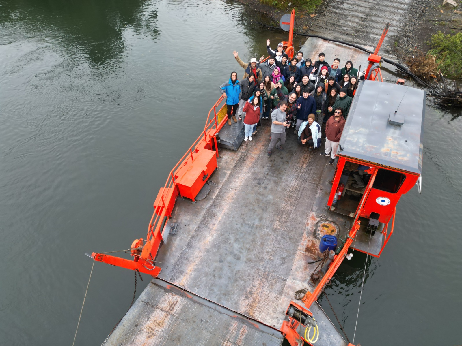 Treinta estudiantes del Taller de Asentamientos Costeros de Arquitectura viajaron a la Región de la Araucanía, en la desembocadura de los ríos Imperial y Moncul, en el estuario de Puerto Saavedra y Nehuentúe, para realizar proyectos de habilitación de espacios con el objetivo de potenciar la tradicional actividad de “balseo”, arraigado medio de comunicación de la zona.