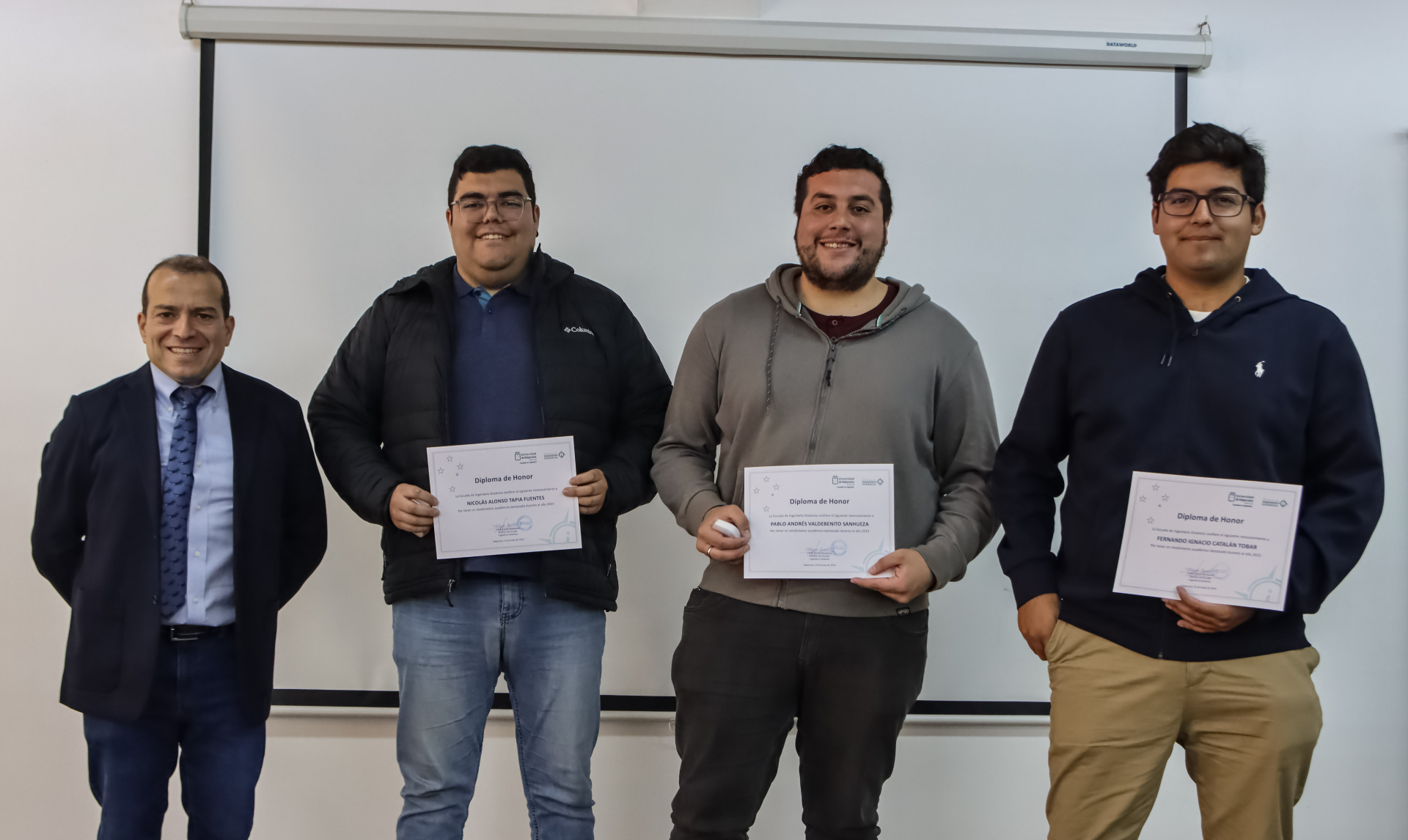 Finalmente, se entregó una distinción a quienes aprobaron todas las asignaturas cursadas, ingresando al Cuadro de Honor de la carrera, entre los que estuvieron Claudio Arriagada, Rubén Morales, Camila Pinilla, Valentina Guiñez, Catalina Araneda y Vicente Álvarez.