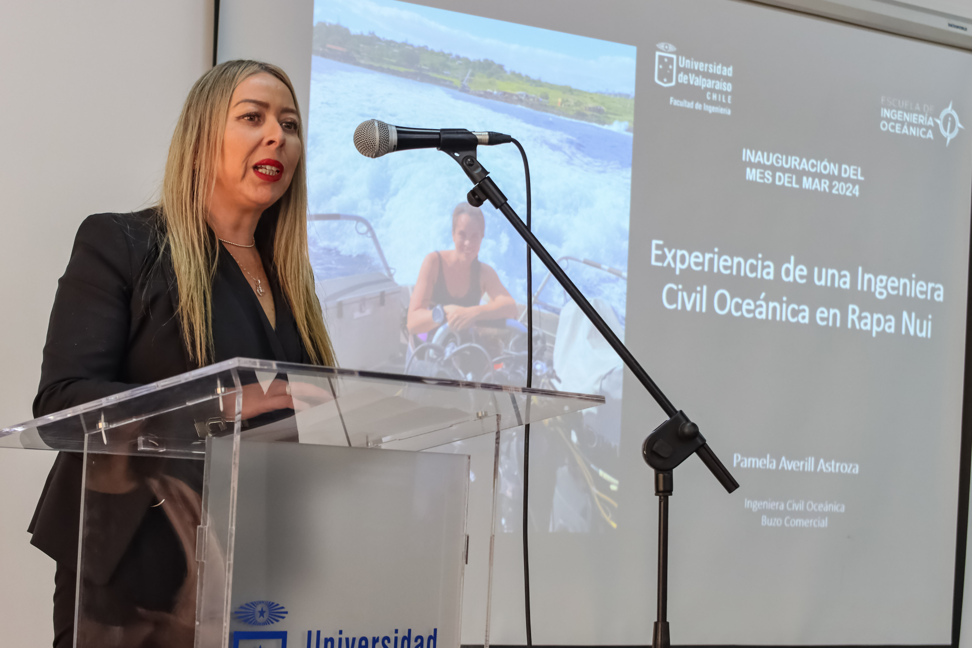 Ingeniera de Proyectos en la Unidad del Mar de la Municipalidad de Rapa Nui y buzo comercial, son las labores que se desarrolla en la actualidad Pamela Averill, la única ingeniera civil oceánica de la isla, quien fue invitada a contar su experiencia en el marco de la cuenta pública de esa unidad académica y su inauguración del Mes del Mar.