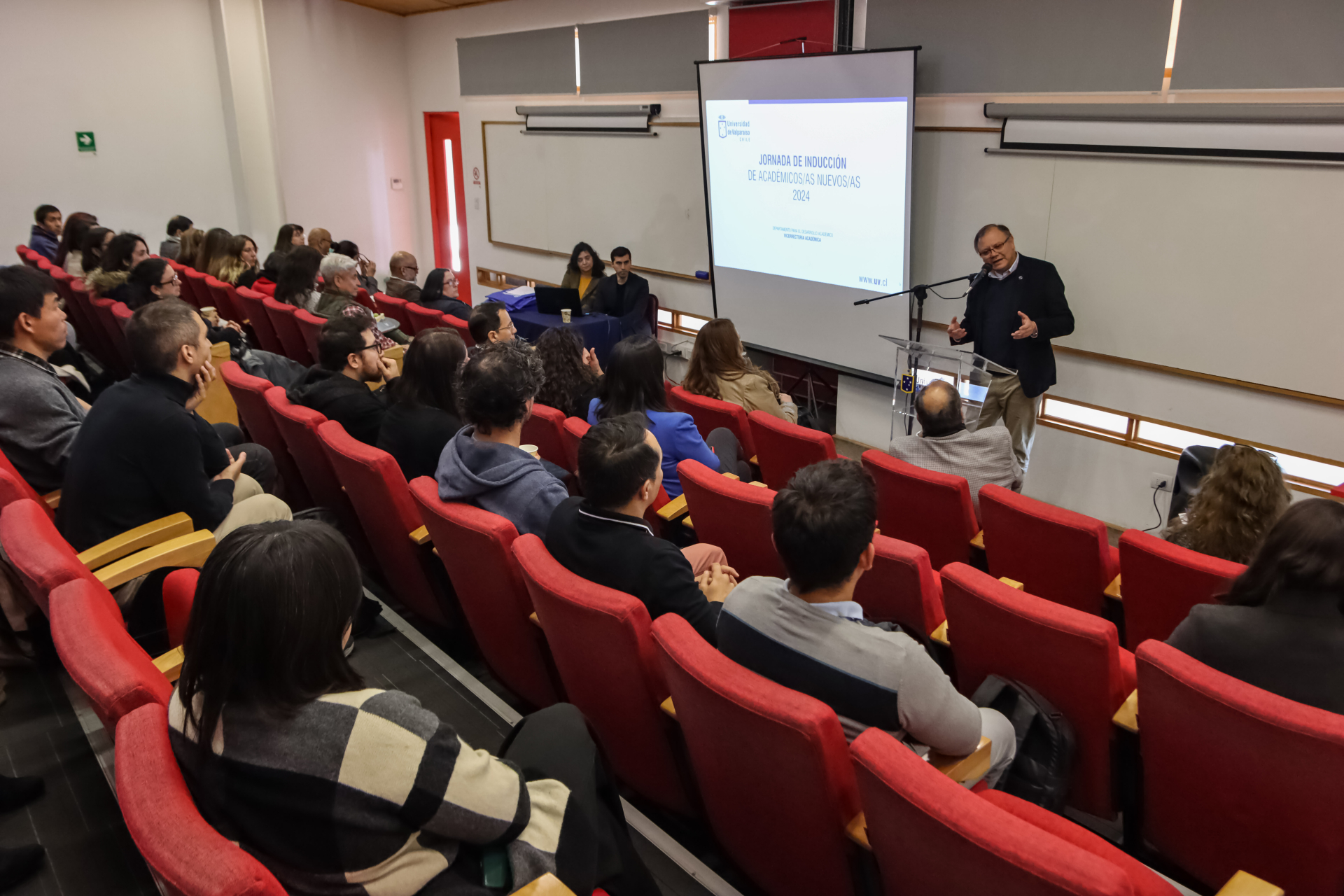 La cita fue presidida por el rector de la UV, Osvaldo Corrales; el prorrector, Christian Corvalán; los vicerrectores Académico Carlos Becerra; de Investigación en Innovación, María Soledad Torres, y de Vinculación con el Medio, Carlos Lara; la directora general de Pregrado, Virginia Sánchez, y la directora general de Desarrollo Institucional y Aseguramiento de la Calidad, Soledad Narea, junto a académicos y académicas.