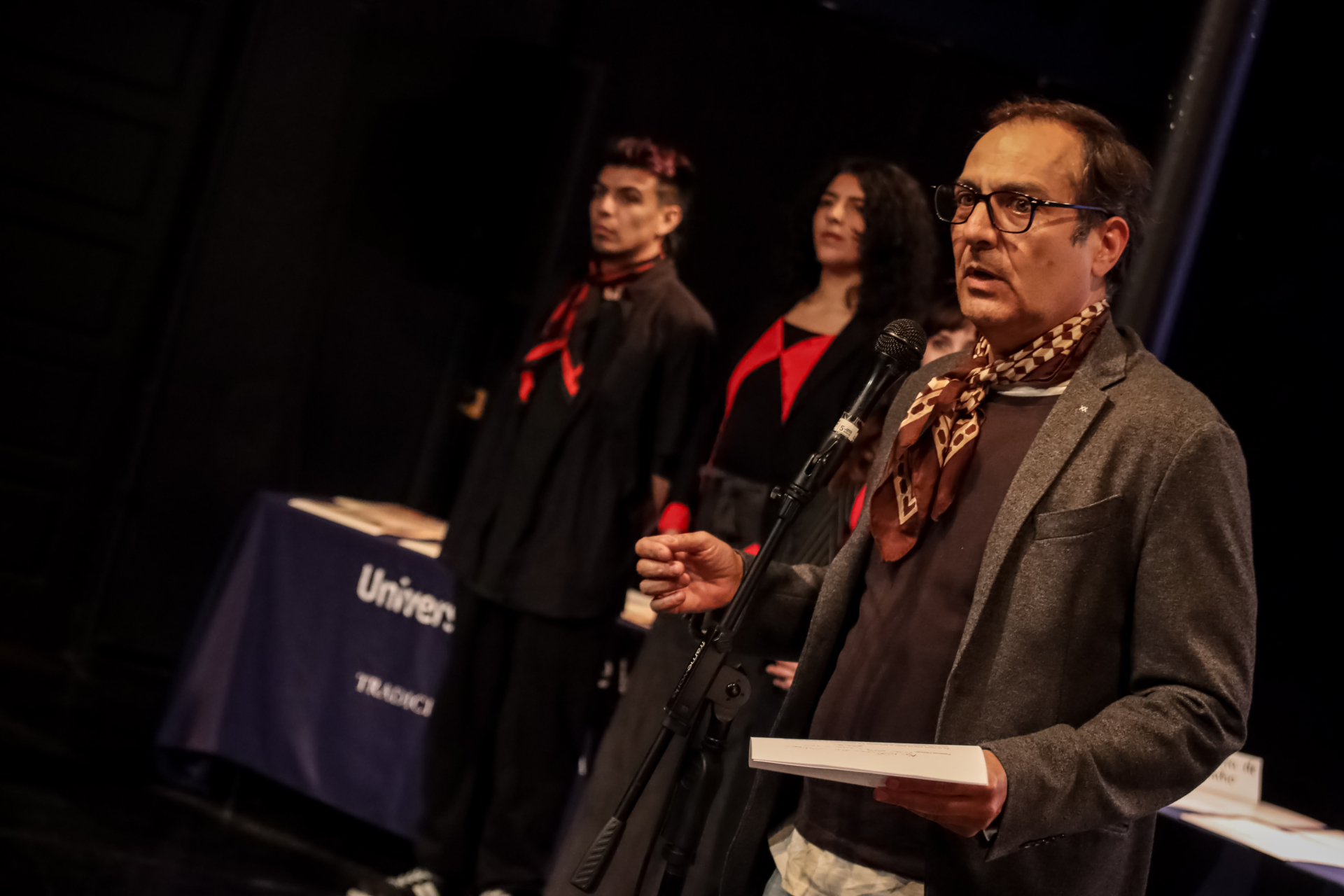 Óscar Acuña, director de la Escuela de Diseño UV, hizo entrega de un set de fotografías de los años '70 del académico Manuel Opazo. Al respecto mencionó que “este material muestra toda la trayectoria de los estudiantes de Teatro desde primer año hasta su titulación. La carrera sufrió un quiebre, pero no fue tan fuerte como para acabar con estas imágenes, que pertenecen a los años previos y durante dictadura, que muestran cómo un grupo de estudiantes decidieron hacer del teatro parte de la escena de Valparaíso”.