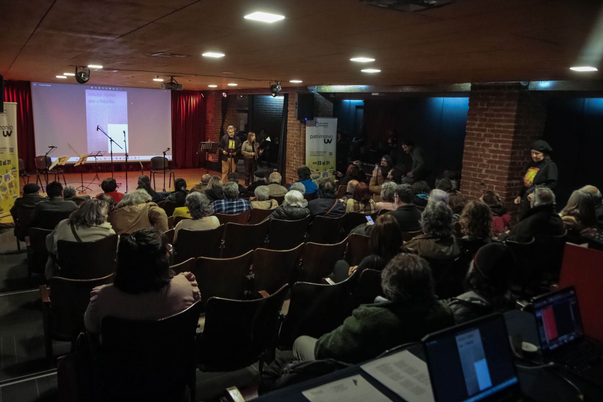 La velada, que se desarrolló a sala llena, fue organizada en conjunto por la Dirección de Extensión y Comunicaciones UV y el colectivo El Brasero. En representación de la Universidad de Valparaíso, hizo uso de la palabra el vicerrector de Vinculación con el Medio, Carlos Lara, quien valoró especialmente la colaboración con el mencionado colectivo, por cuanto rescata parte importante de la historia y entrega elementos de identidad necesarios para reforzar los lazos que vinculan a la casa de estudios con la comunidad, con las personas y los territorios.