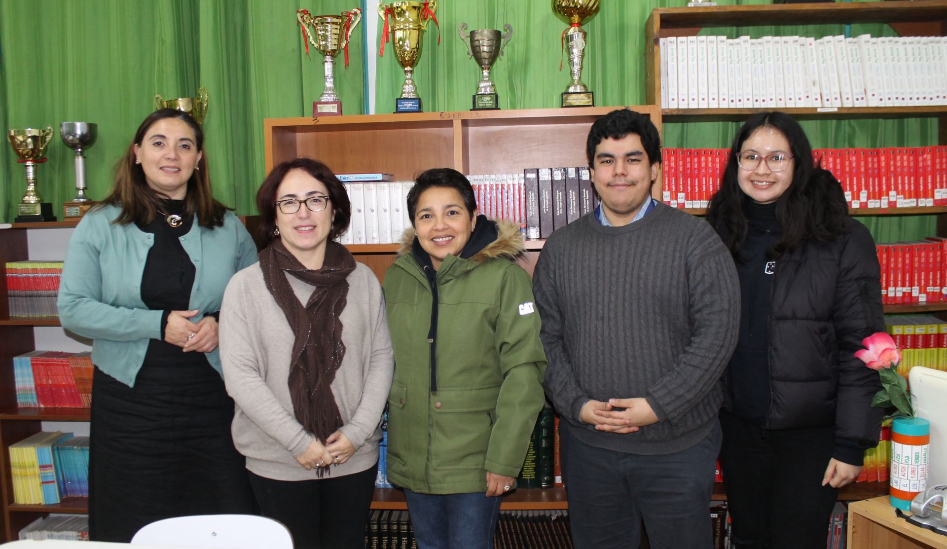 En la primera etapa, las profesoras Ximena Collao y María Elizabeth Guerra, de la Escuela de Medicina, y Daira Velandia, de la Facultad de Ciencias, junto a los estudiantes Franco Nova de Medicina y Javiera Contador de Ingeniería en Estadística y Ciencias de Datos, dieron a conocer la iniciativa al equipo directivo y profesorado del establecimiento educacional.