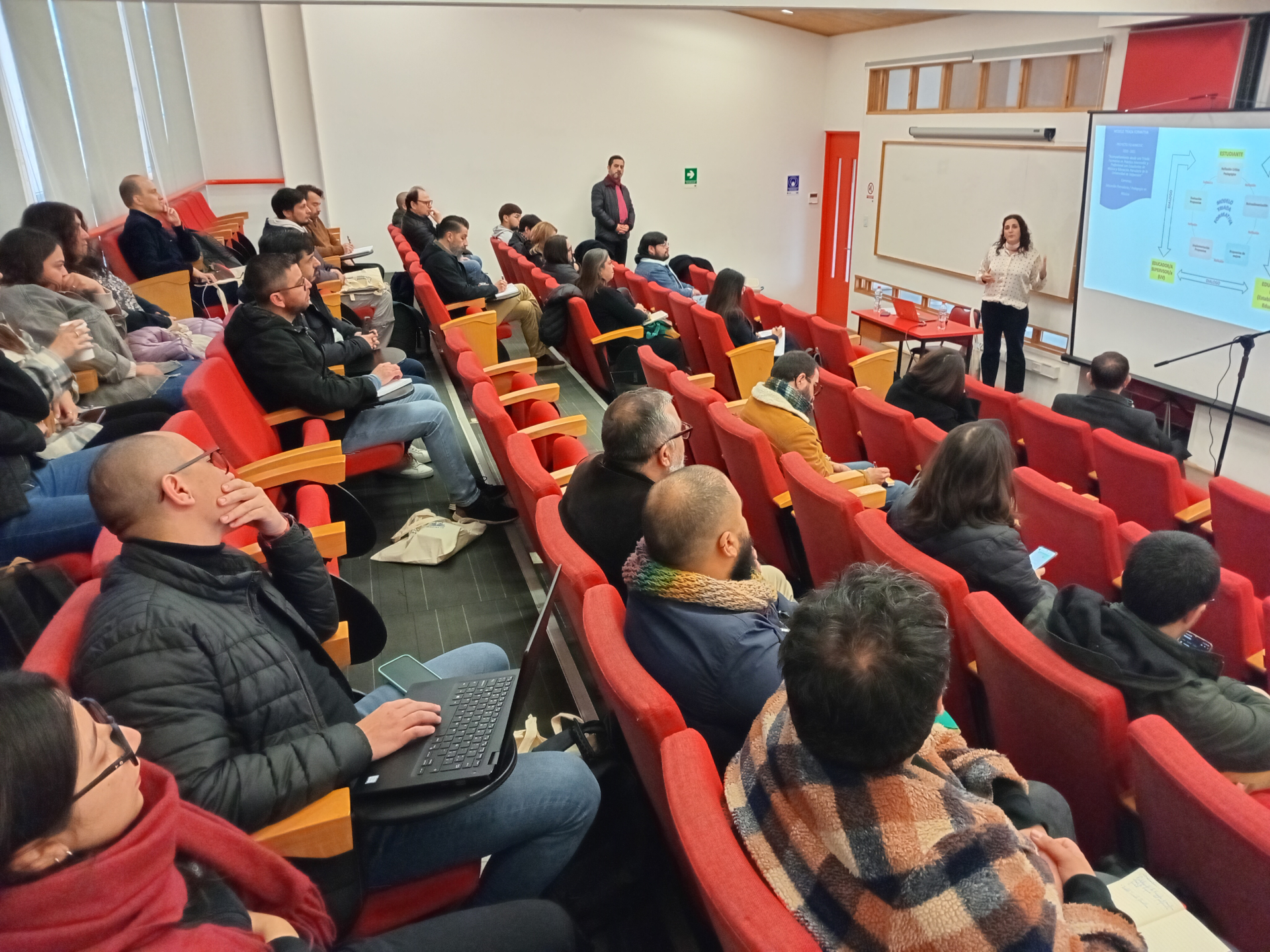 Tras la intervención de la académica le correspondió presentar al profesor Carlos Bravo, de la carrera de Pedagogía en Historia y Ciencias Sociales, quien dirigió un conversatorio sobre el impacto de fortalecer la triada formativa, desde la figura del profesor guía, y con ello la experiencia en formación inicial docente.