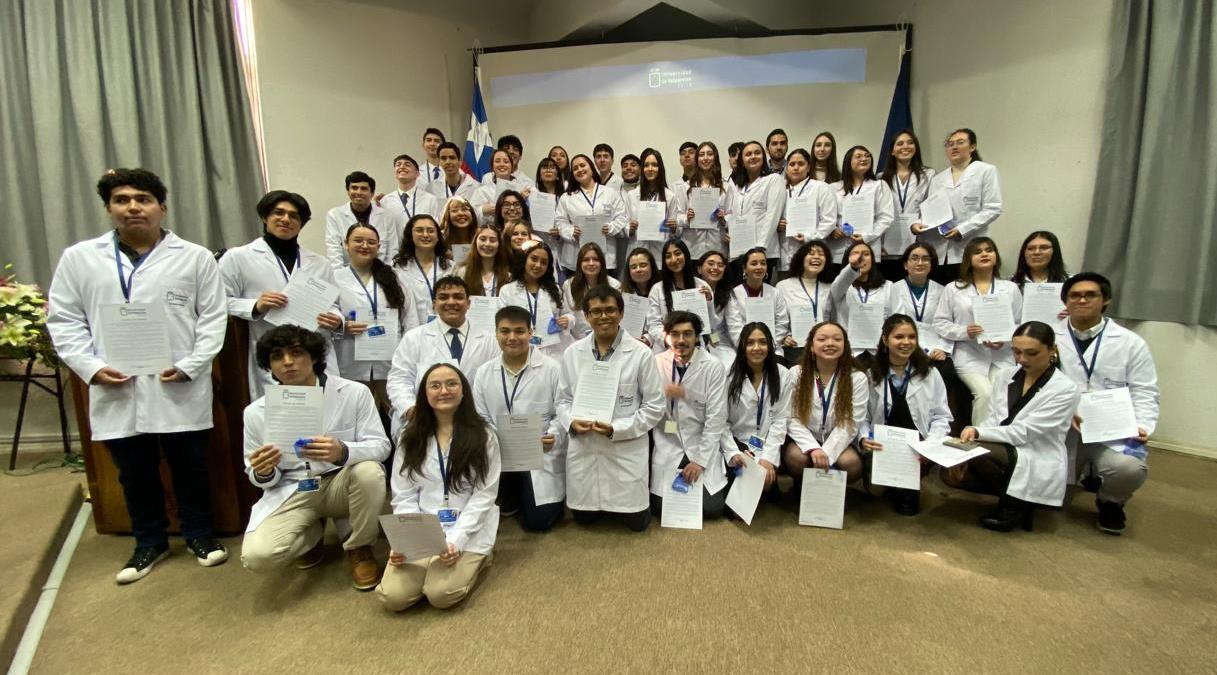 La ceremonia fue encabezada por la jefa de carrera, Camila Vera, quien en su discurso expresó que “el estudio de la Medicina es un desafío lleno de sacrificios y recompensas, donde cada lección aprendida y cada experiencia vivida las y los acercará un paso más a convertirse en las y los profesionales que nuestra sociedad tanto necesita. La fortaleza de esta profesión radica no solo en el conocimiento técnico y científico que adquirirán, sino también en la empatía, la compasión y el compromiso con el bienestar de los demás”.
