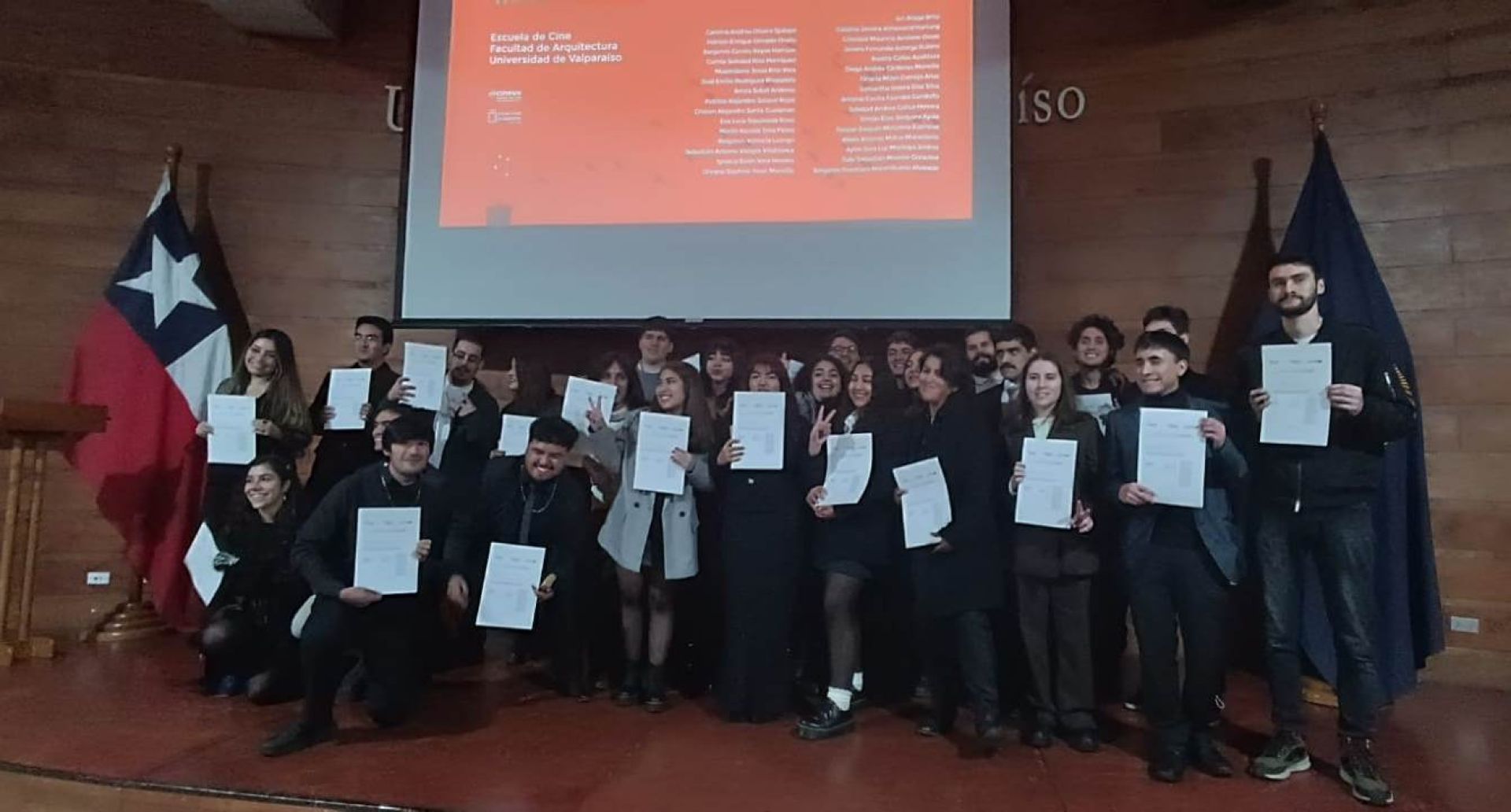 Treinta nuevos profesionales correspondientes a la generación 2023 tituló la Escuela de Cine UV, en una ceremonia realizada en el auditorio de la Facultad de Arquitectura, con la presencia de autoridades universitarias, académicos, estudiantes y familiares de las y los titulados.