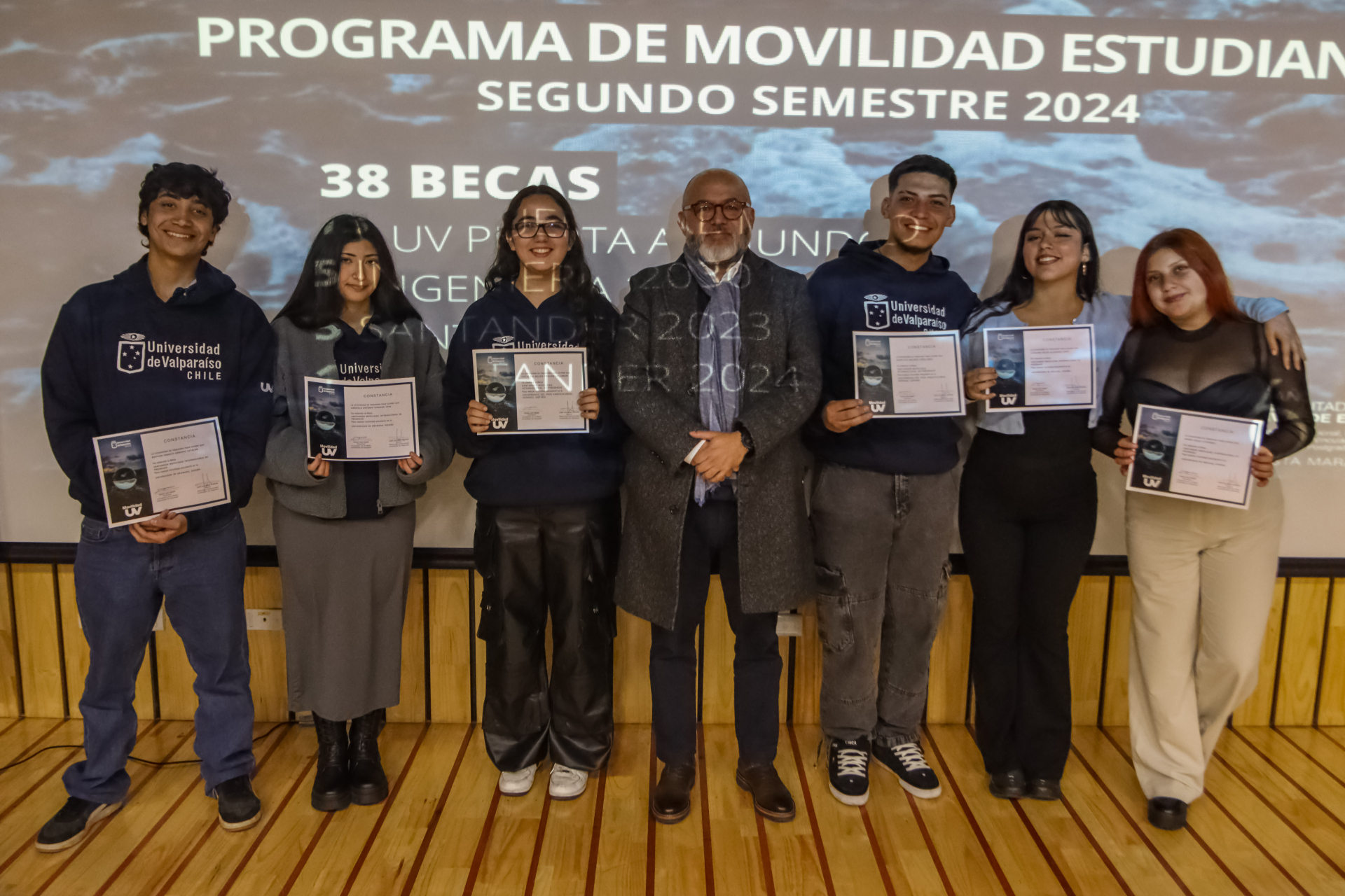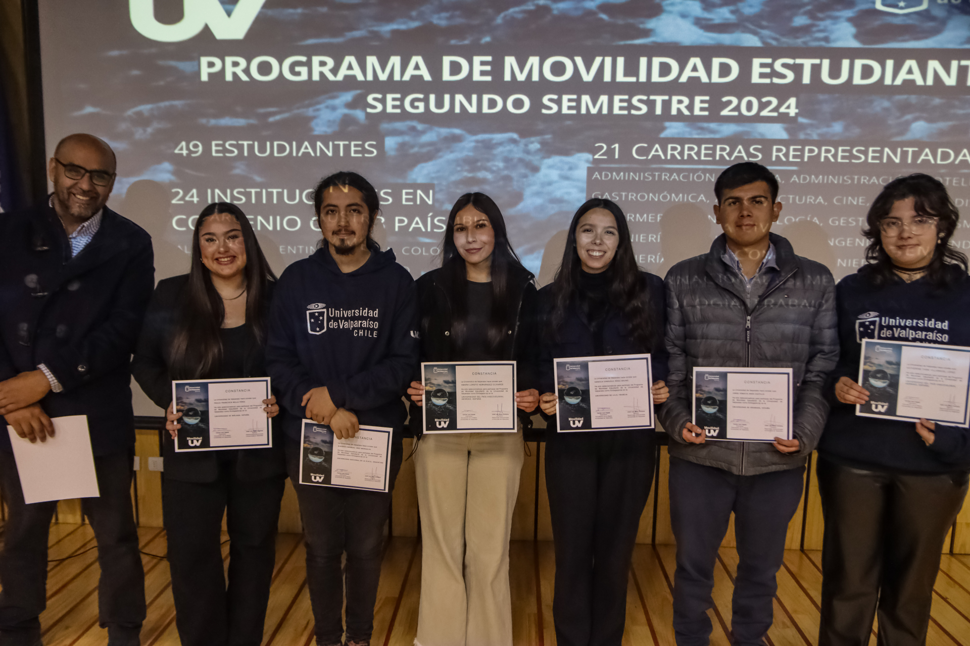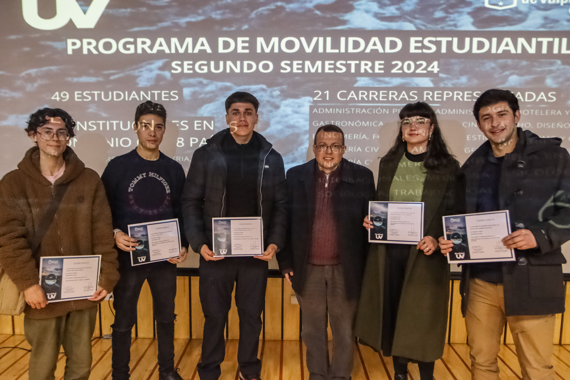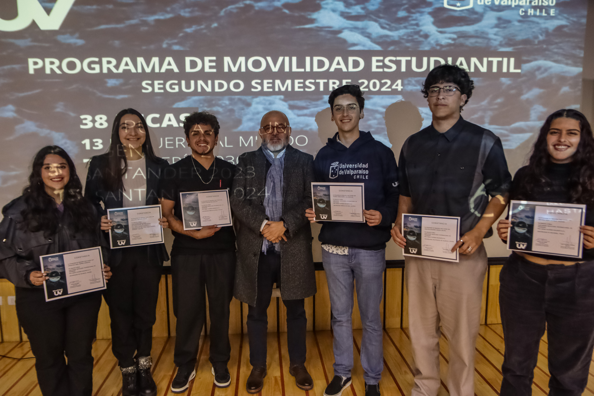 De igual modo, las autoridades presentes les hicieron entrega de una constancia que los acredita como participantes del Programa de Movilidad UV 2024 y, en el caso de treinta y ocho de ellos, de la certificación de la correspondiente beca de apoyo que hará posible su viaje y permanencia en la institución extranjera a la que postularon, entre las que figuran UV Puerta al Mundo, Santander, Ingeniería 2030 y Alianza del Pacífico.