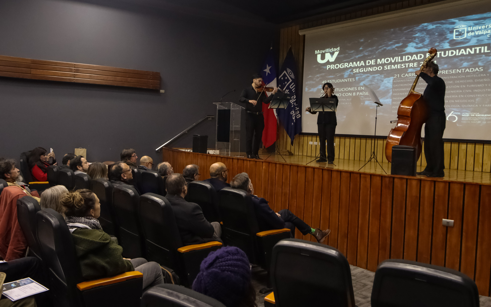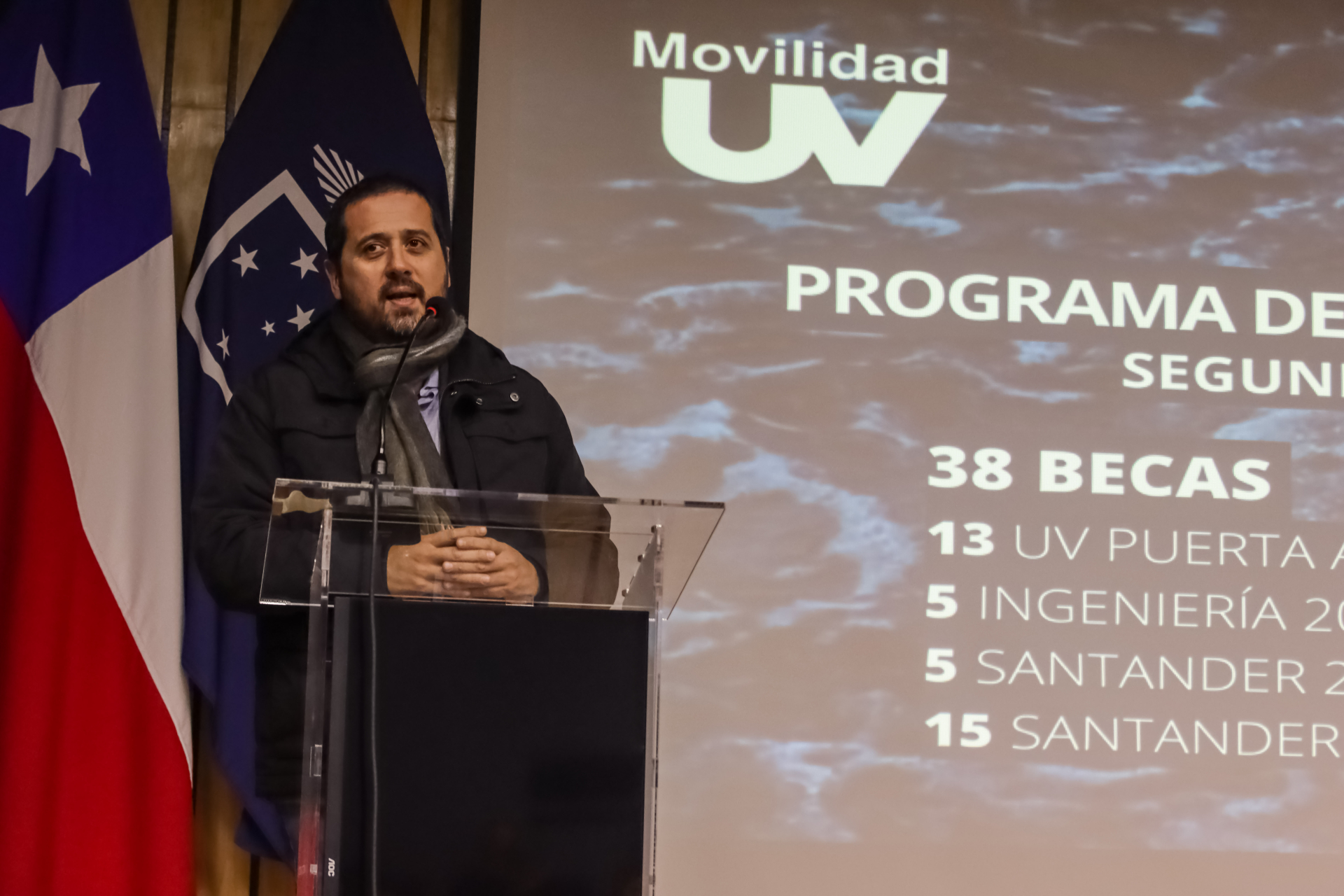 Durante el desarrollo de la actividad, el director de Relaciones Institucionales, José Luis Meza, hizo uso de la palabra para felicitar y reconocer los méritos de los estudiantes seleccionados. Asimismo, reiteró que para la UV la movilidad es uno de los ejes más importantes de la gestión institucional, al tiempo que relevó tres elementos esenciales de ella: la sistematicidad de la internacionalización como proceso, las múltiples dimensiones que este posee —que van más allá de los programas de intercambio— y el esfuerzo que han realizado y realizan los diferentes programas de pregrado y postgrado para flexibilizar, enriquecer y adaptar sus planes de estudios, con miras a adecuarlos a las exigencias de una sociedad cada vez más interconectada y global.