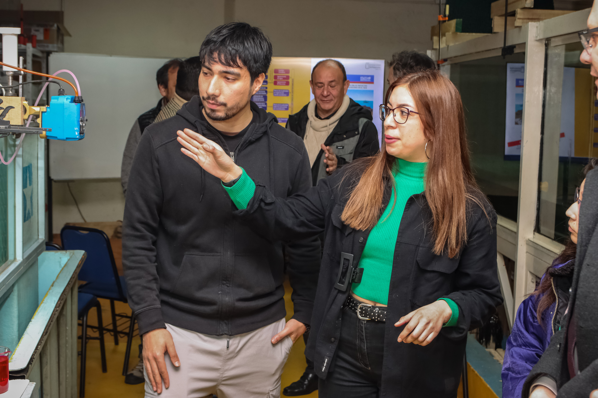 La visita contó con la presencia de Esteban Sefair, decano de la Facultad de Ingeniería; Felipe Caselli, director de la Escuela de Ingeniería Oceánica, y Felipe Hurtado, académico PUCV, director del proyecto, junto a estudiantes y ayudantes del Labocénao.
