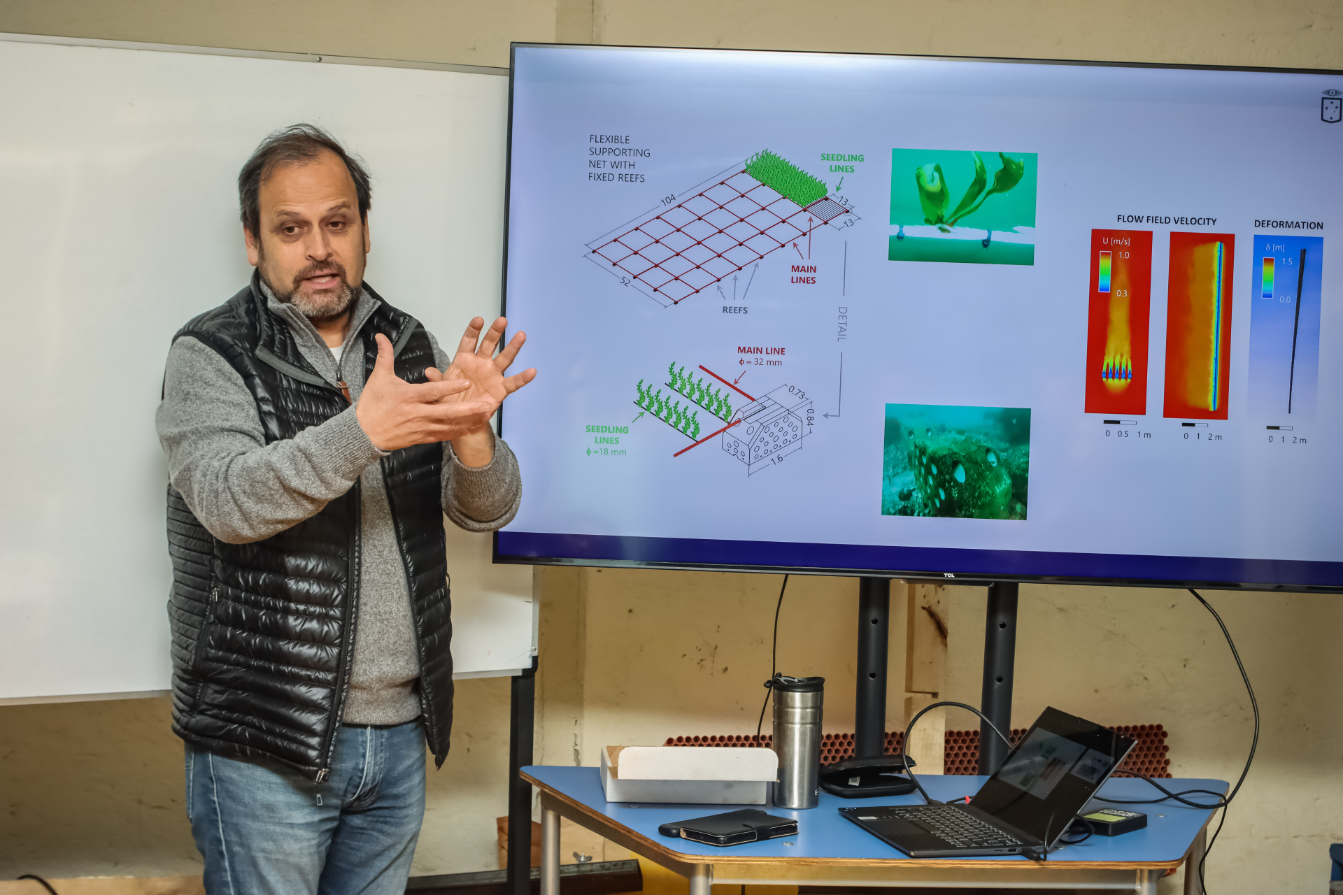 Patricio Winckler contó que “en el Labocéano estamos haciendo ensayos que nos van a permitir hacer un prototipaje antes de llevar estos dispositivos al mar. Ha sido muy interesante, llevamos un año, estamos con las modelaciones avanzadas y al menos con el prototipo del bosque de algas, en un par de meses vamos a estar instalándolo en Maitencillo”.