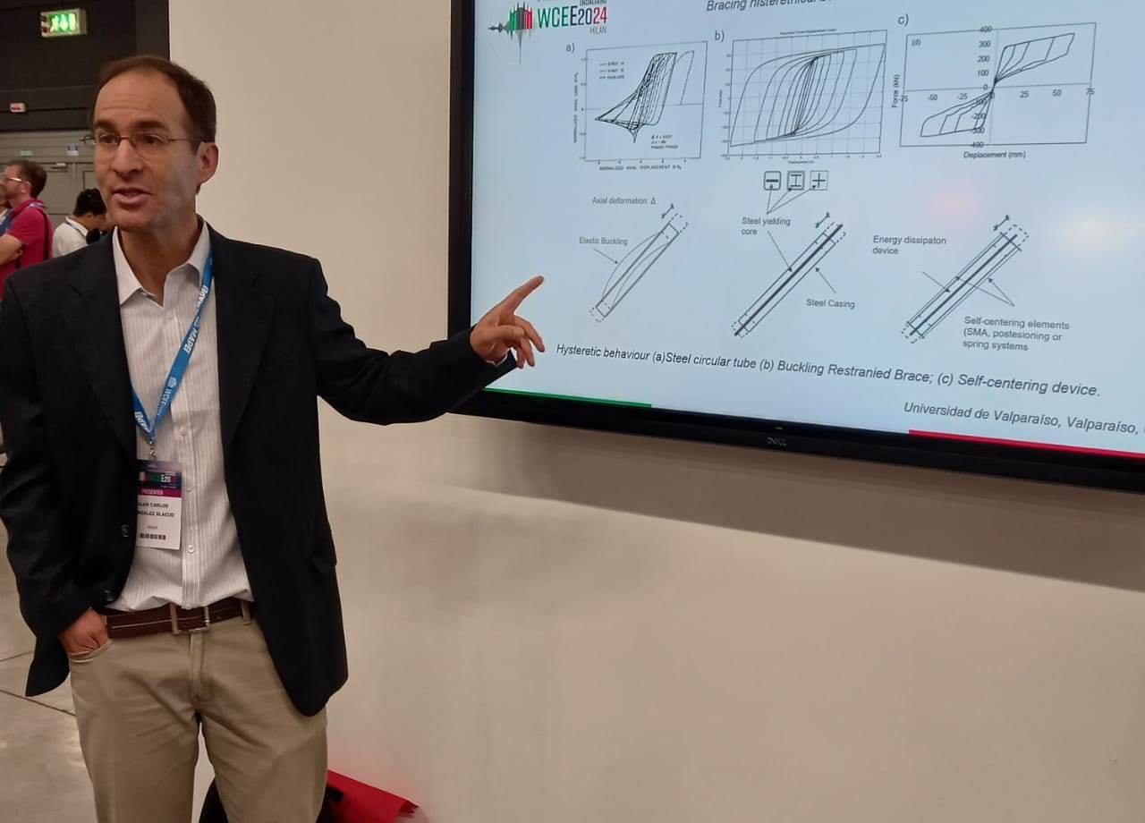 Los académicos Alejandro Morales (director) y Juan Carlos González, de la Escuela de Ingeniería Civil de la UV participaron como expositores en la reciente XVVIII Conferencia Mundial de Ingeniería Sísmica realizada en Milán.