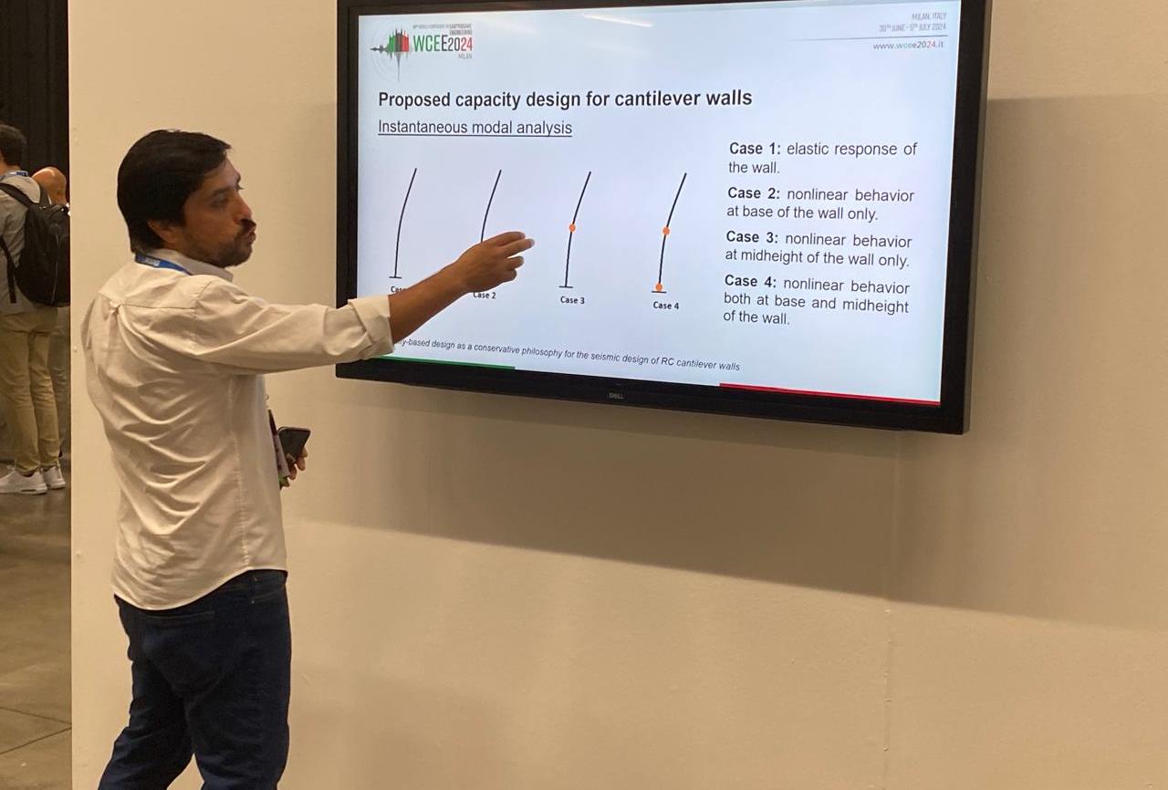 Morales presentó el trabajo “Capacity-based design as a conservative philosophy for the seismic design of rc cantilever walls”, mientras que González hizo lo propio con “Seismic performance of steel braced frames buildings with mixed dissipative energy elements”.