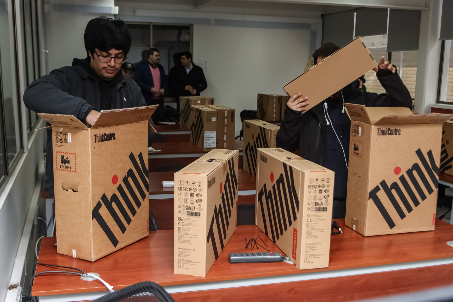 Marco Aravena, director general de Modernización y Transformación Digital UV, comentó que “estamos instalando 885 computadores producto de una licitación de arriendo de los mismos que realizó la Universidad, en un esfuerzo por renovar equipamiento computacional y también en línea con las políticas de sostenibilidad ambiental. Eso significa que estos equipos van a ser renovados posteriormente por la empresa en el plazo de tres o cuatro años, eliminando todos los residuos que generan. Los equipos tienen diferentes tipos de gama —media y alta— según las necesidades a las que responden”.