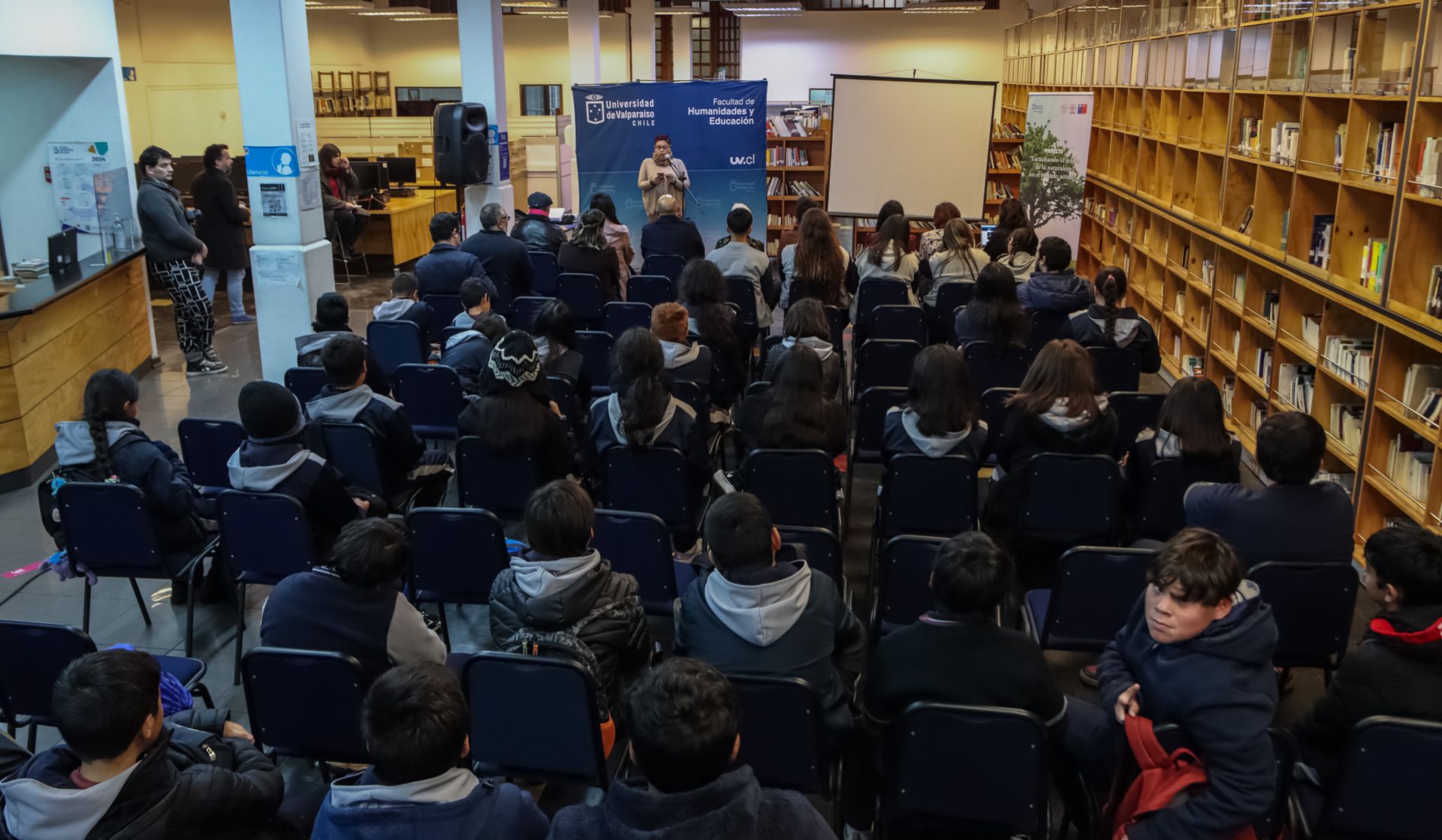 La ceremonia de clausura del proyecto —el que se desarrolló durante varios meses— tuvo lugar en la biblioteca de la unidad académica, y contó con la presencia del decano de Humanidades y Educación, Pablo Aravena; la secretaria de Facultad, Ángela Vallejos; el vicerrector de Vinculación con el Medio, Carlos Lara; la coordinadora de la Unidad de Medio Ambiente y Sostenibilidad de la UV, Yenny Olivares, y académicas, académicos, estudiantes, docentes, alumnas y alumnos de los establecimientos participantes.