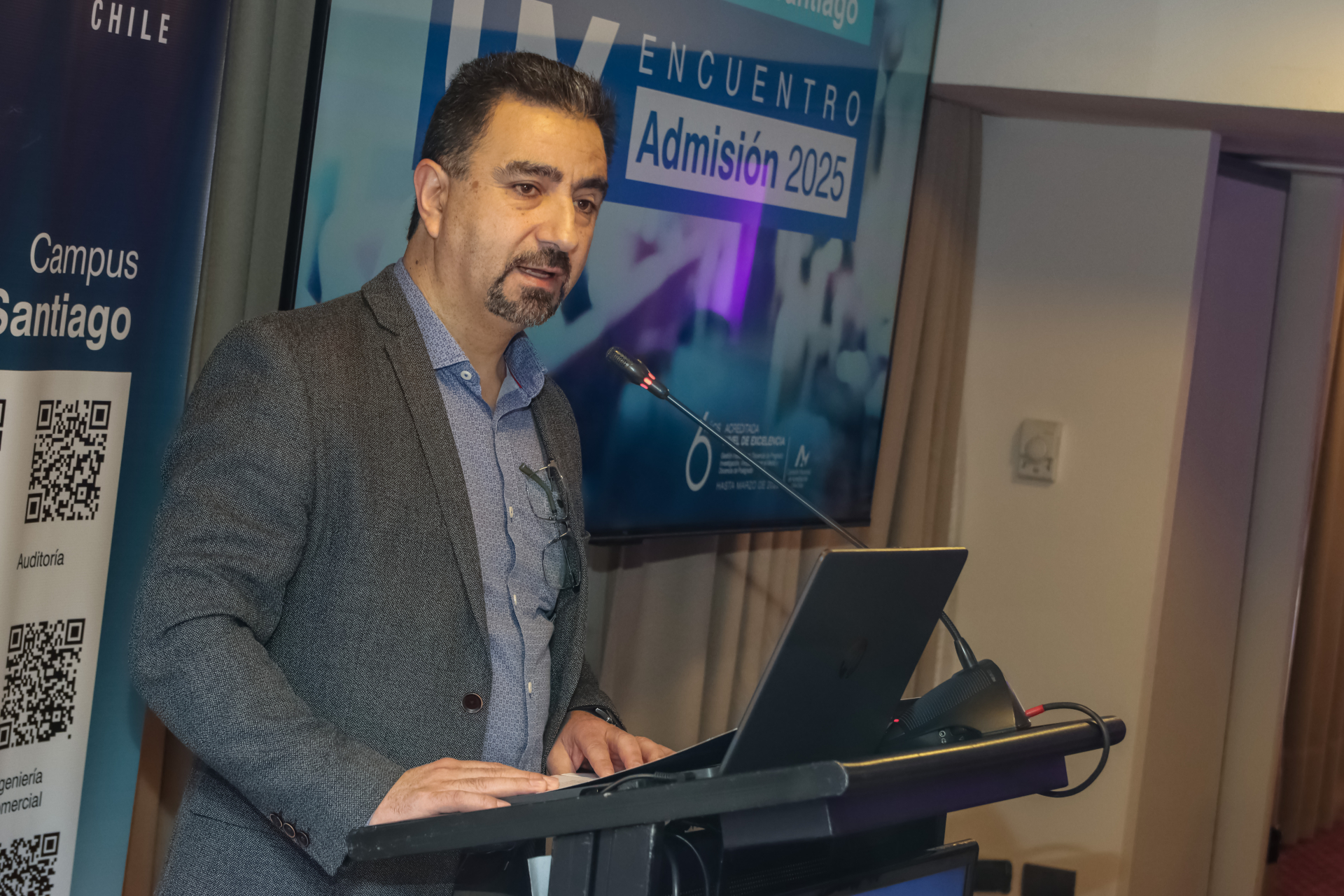 Este evento, que cumplió así su tercera versión consecutiva, contó con las palabras del rector Osvaldo Corrales y del director del Campus Santiago, Jaime Vera, además de la exposición del vicerrector académico Carlos Becerra sobre las novedades del proceso de admisión 2025, con énfasis en los ingresos especiales.