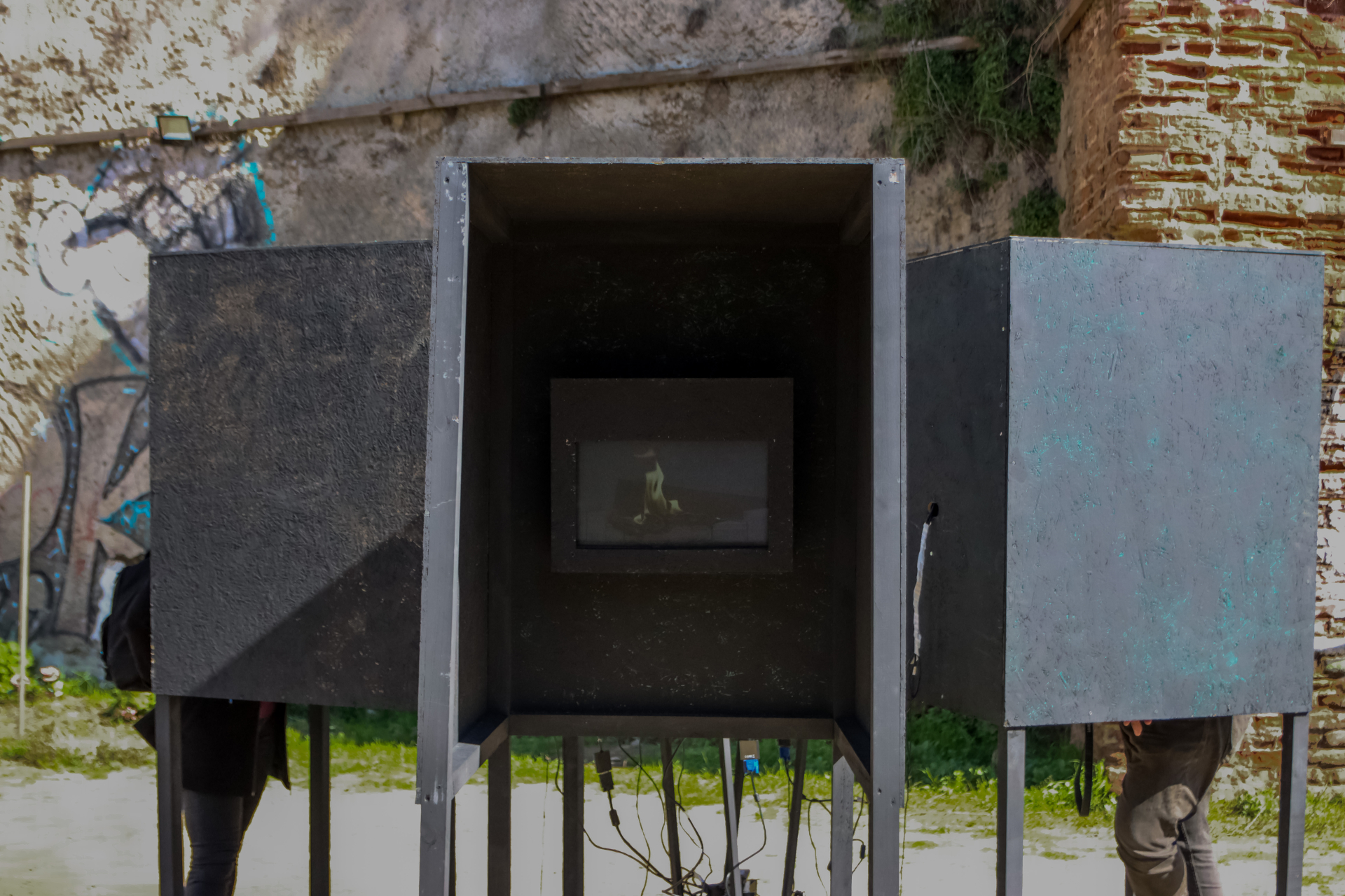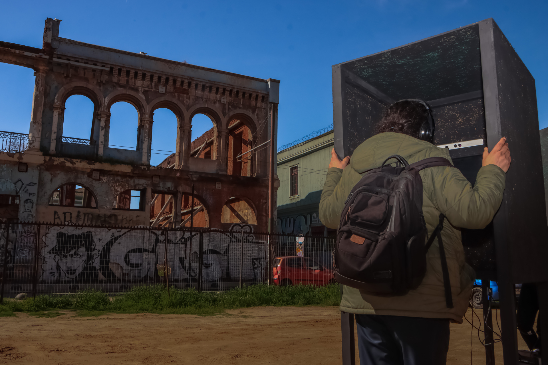 Su colega Karina Ogaz, cineasta y académica UV, explica que “la obra busca generar una reflexión en torno a la memoria, sobre una ciudad que no logra reconstruirse, por eso las casetas que emulan el tema político de las urnas en las votaciones”.