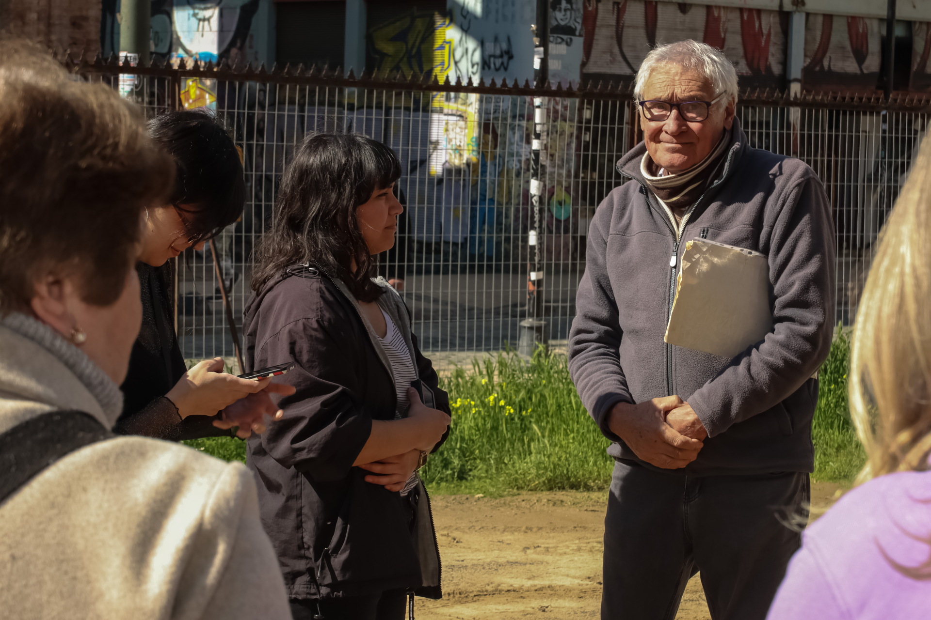 “Queríamos salir del espacio de una instalación de museo o de la sala de clases. Para eso inventamos nuestra propia metodología de recoger testimonios, transformarlos en video y sonido, tomando parte de lo que se propone en el curso Seminario Interdisciplinar del Magíster, que es trabajar con el espacio fílmico, no fílmico y arquitectónico”, añade.