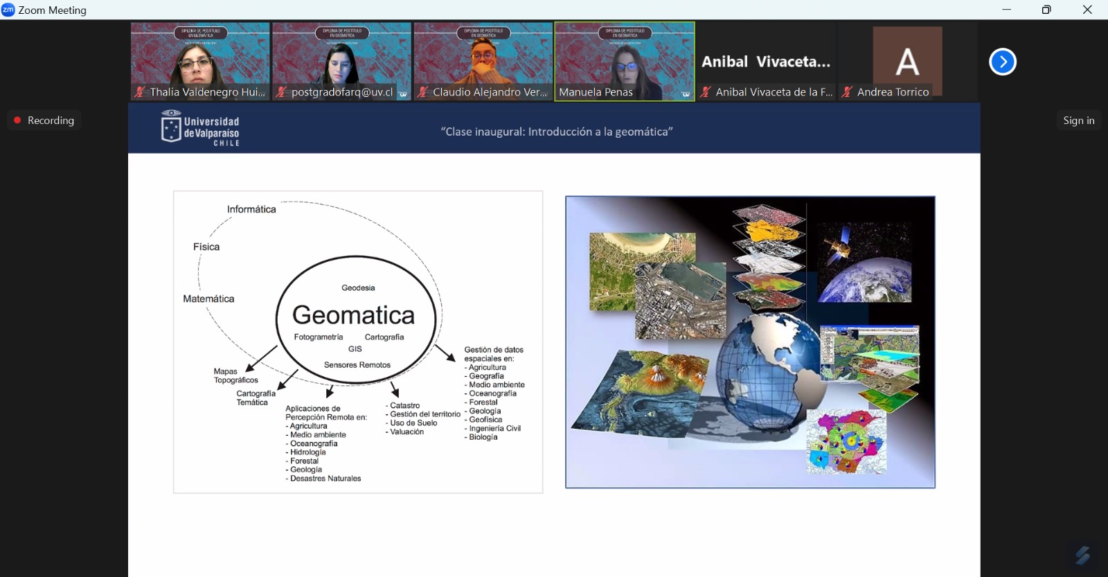 "Introducción a la Geomática: Uso de tecnologías para el análisis integrado del territorio", fue la clase inaugural en línea a cargo de la profesora Manuela Penas Pereira-Pinto, geógrafa de la PUCV, para dar inicio a la primera versión del Programa de Diploma de Postítulo en Geomática de la Facultad de Arquitectura UV, en colaboración con el Centro de Investigaciones de Vulnerabilidades e Informalidades Territoriales, CINVIT.
